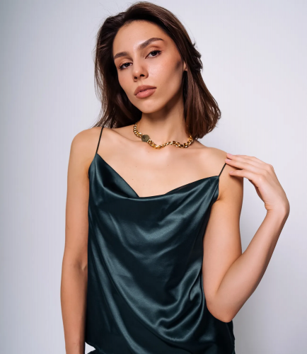 Облегающая посадка делает этот топ абсолютно универсальным. Трикотажный топ является замечательным трендом летнего сезона, который легко комбинировать с разными стилями.