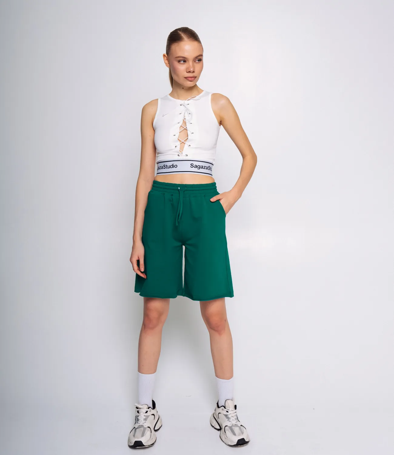 Шорты – это практичный, удобный и стильный вариант для повседневнего образа. Изделие изготовлено из высококачественного материала, который приятен к телу и обладает хорошей износостойкостью. Рост модели 173, 84-58-89.