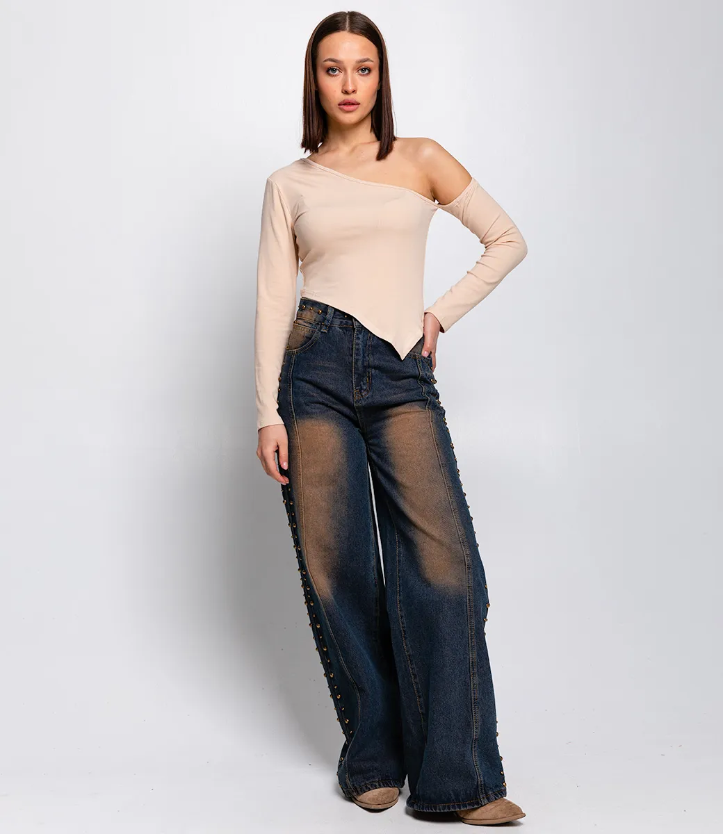 Укороченный кроп топ - это верхняя часть одежды с обрезанным подолом, который обычно заканчивается на уровне талии или ниже. Такой крой создает модный и современный вид, позволяя показать красивую линию талии и подчеркнуть формы. Комбинируйте кроп топ с высокой посадкой джинсами, юбкой или шортами для создания элегантного и стильного образа. Открытое плечо добавляет пикантности и сексуальности к кроп топу. Длинные рукава придают кроп топу изысканный и стильный вид.