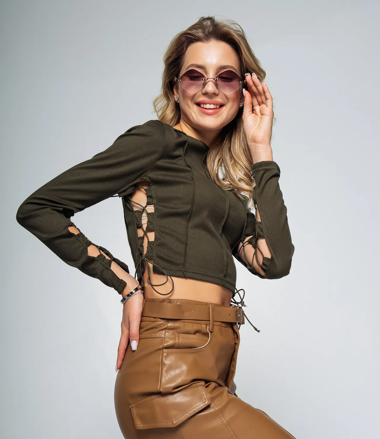 ст. цена740руб.! Кроп-Топ #БШ2038, хаки
