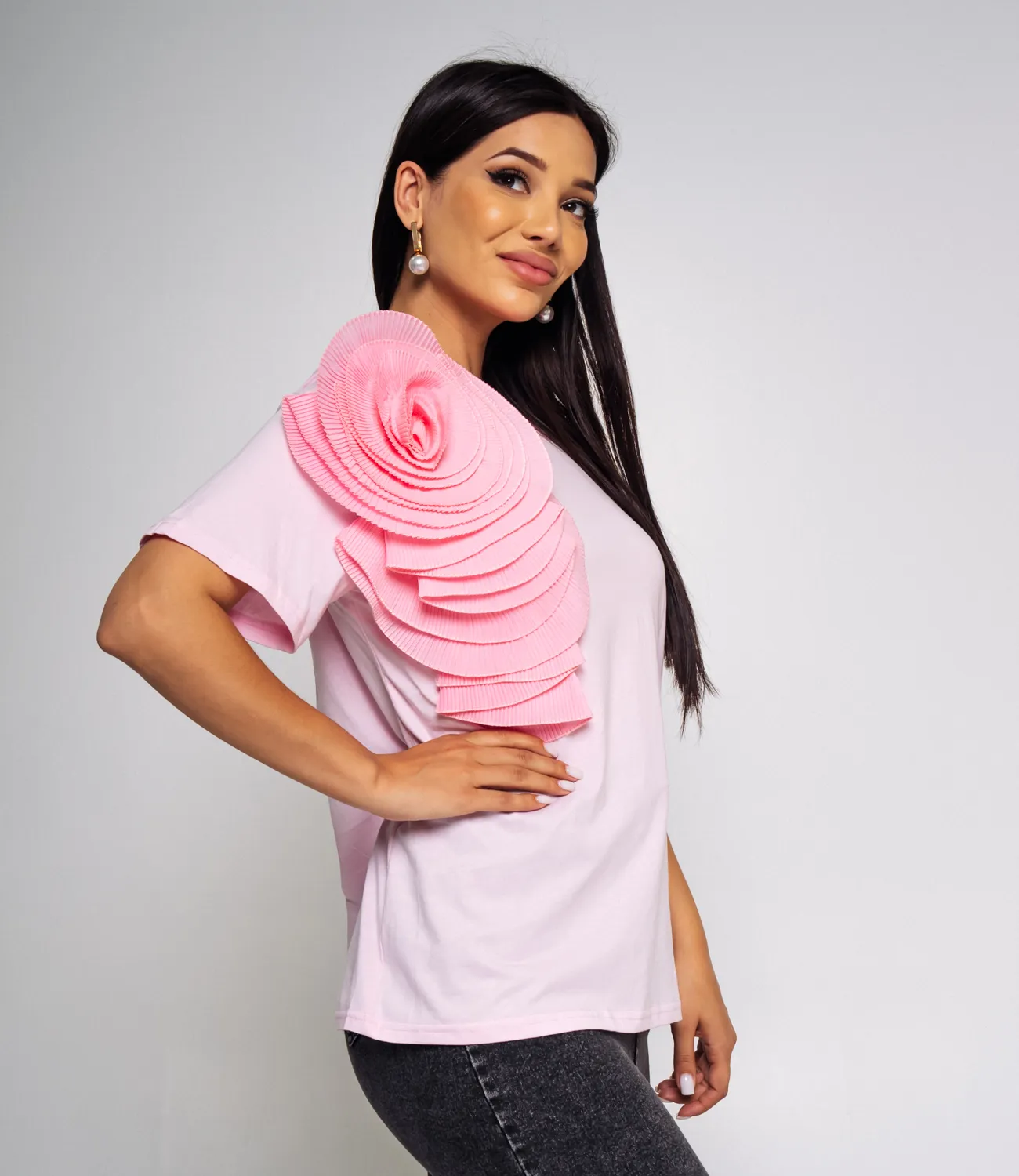 Футболка – это вещь, которая подчеркивает уникальность каждой женщины. Данная модель отлично подойдет для любого сезона. Ее выбирают покупательницы, которые ценят сочетание качества и стоимости. Крой подчеркивает красоту фигуры. Компания-производитель знает, как разработать модные решения. Для изготовления выбран 100% хлопок, который характеризуется отличным качеством. Даже после многих стирок футболка не потеряет первоначальной привлекательности. Вы будете ее носить с радостью. Обратите внимание футболка украшена большим цветком, который придает футболке особый шарм и уникальность. Цветовая гамма насыщенная и полностью соответствует изображению на сайте. Для вашего комфорта мы предоставили таблицу размеров, чтобы вы могли выбрать подходящий вариант без сомнений. Установленная нами цена является доступной. Позвольте себе быть стильной и неповторимой в этой футболки! Рост 170, 86-68-95.