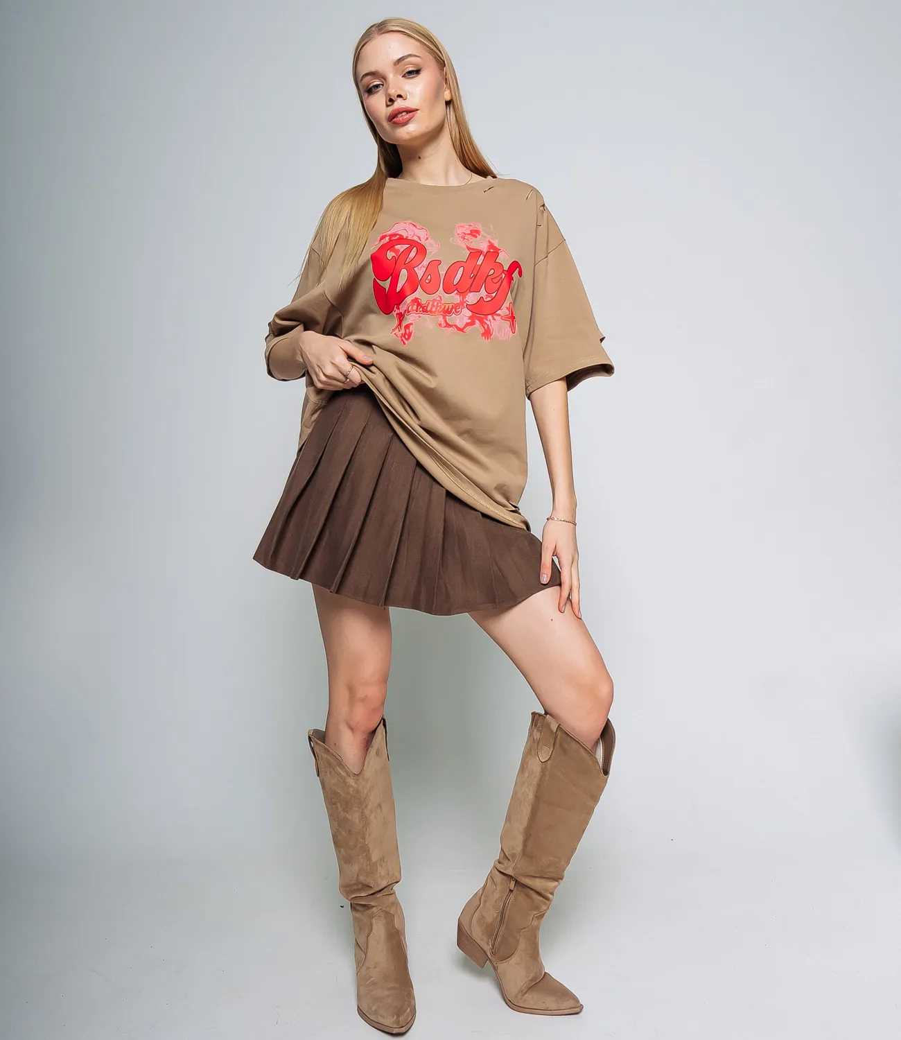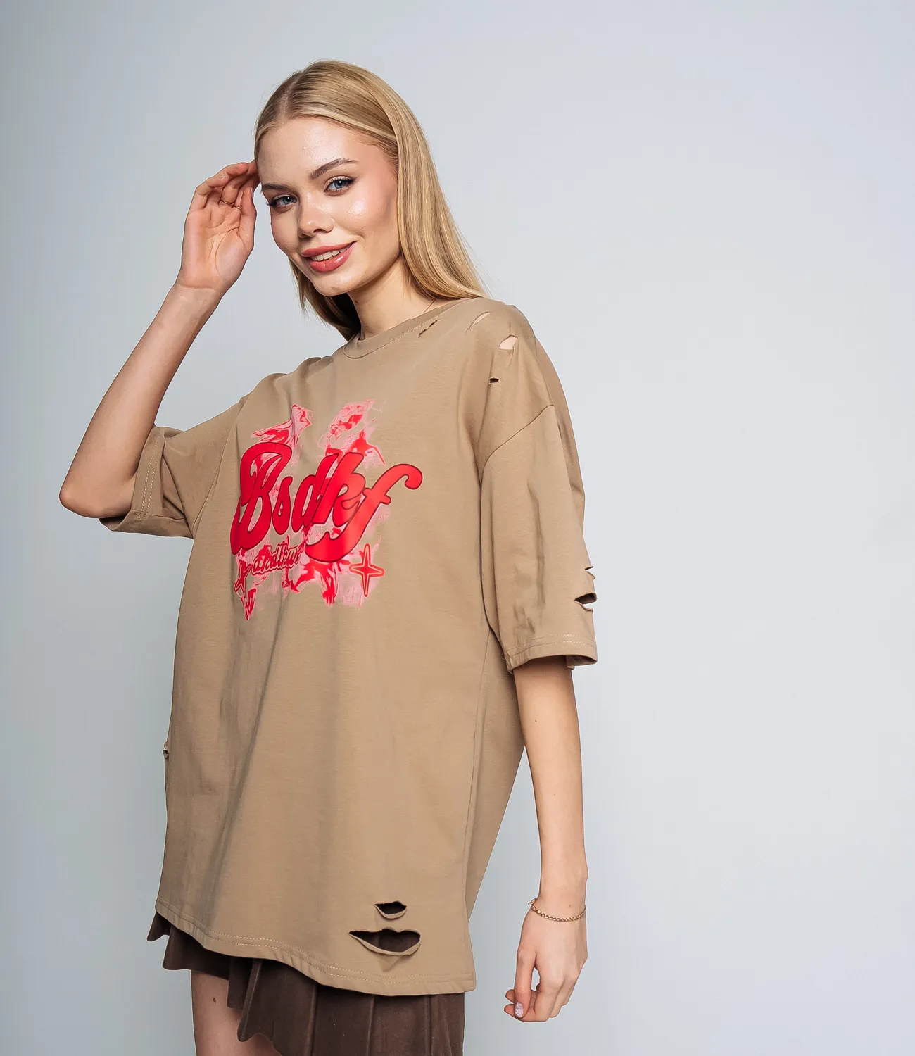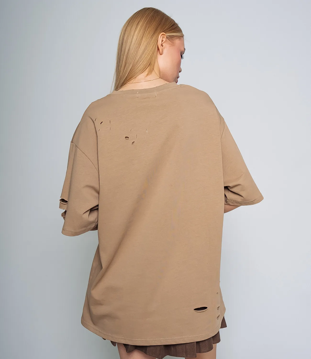 Удлиненная футболка свободного кроя, которая подарит образу комфорт и свободу движения.