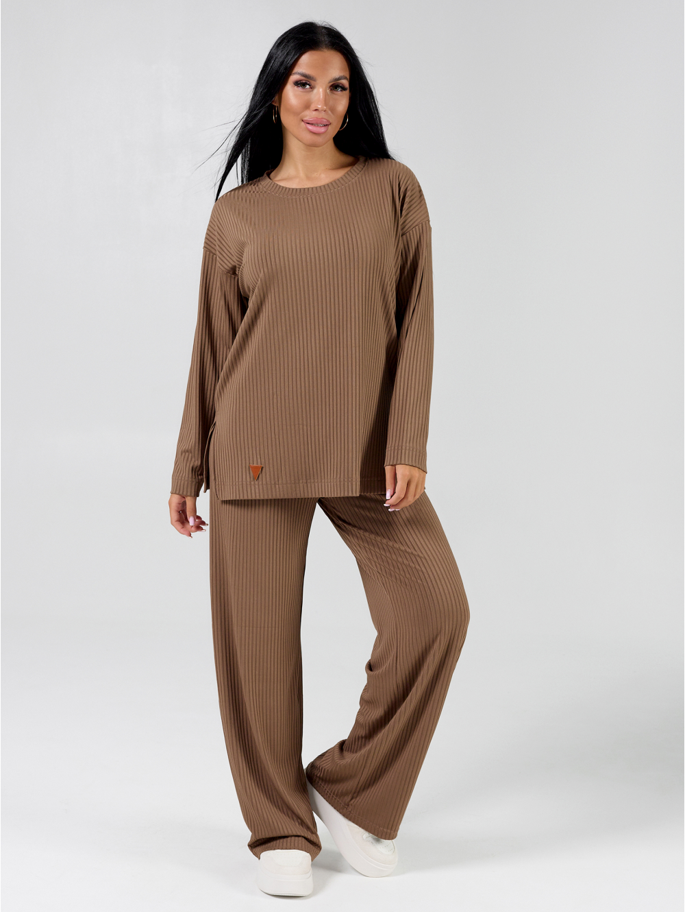 Трикотажный женский костюм из лапши кашкорсе: широкие брюки палаццо с высокой посадкой с мягкой резинкой на поясе + свободный лонгслив в рубчик с длинным рукавом. Универсальный, легкий, удобный в ношении, не стесняет движений. Кофта и штаны свободного кроя создают очень уютное настроение. Скрывает недостатки и подчеркивает достоинства, идеально сядет на абсолютно разную фигуру и рост в любом возрасте. Каждый элемент костюма можно носить отдельно и сочетать с другими вещами в гардеробе. Подходит для создания как строгих, так и романтичных образов (носить с пиджаком и обувью на каблуке). Оптимальный вариант для отдыха, прогулок (просто добавь кроссовки, тренч и аксессуары) и путешествий. Широкий размерный ряд. Самые трендовые цвета. Мягкий и приятный к телу, его просто не захочется снимать. Позволит выглядеть вам на высоте при любых обстоятельствах. Костюм двойка для дома не колется, не мнётся и не вытягивается в коленях.