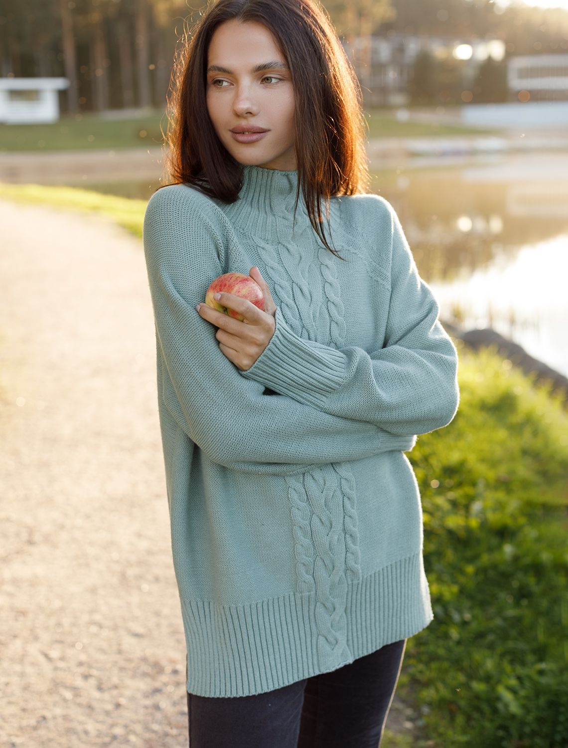 Свитер выполнен из мягкой хлопковой пряжи фактурной вязки с добавлением акрила. Модель связана изнаночной петлей, в сочетании с которой узор косы и высокие рибаны поддерживают ирландский стиль, который всегда в тренде. Комфортный ворот стойка хорошо защищает от ветра. Боковые разрезы поддерживают расслабленный свободный силуэт. Изделие сочетается с любым низом и не требует дополнительных аксессуаров.