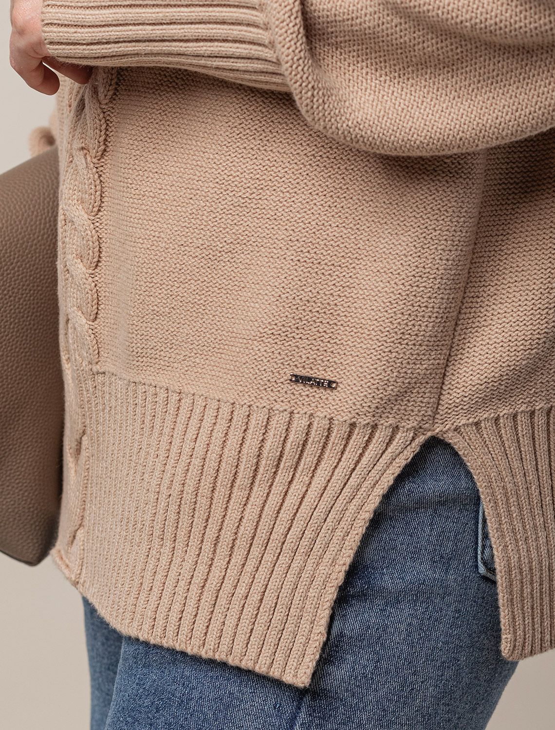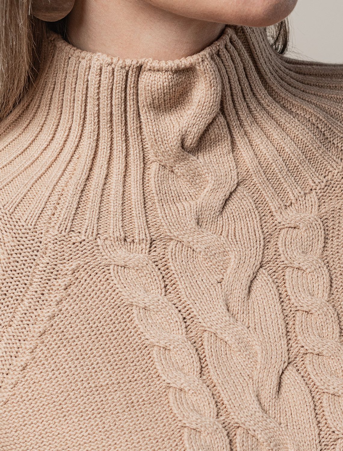 Свитер фактурной вязки с узором косы D34.192 светло-бежевый меланж