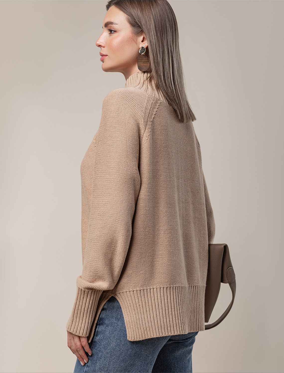 Свитер выполнен из мягкой хлопковой пряжи фактурной вязки с добавлением акрила. Модель связана изнаночной петлей, в сочетании с которой узор косы и высокие рибаны поддерживают ирландский стиль, который всегда в тренде. Комфортный ворот стойка хорошо защищает от ветра. Боковые разрезы поддерживают расслабленный свободный силуэт. Изделие сочетается с любым низом и не требует дополнительных аксессуаров.