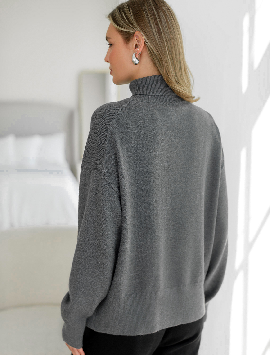 Свитер с классическим воротом выполнен из мягкой пряжи с кашемиром. Лаконичная модель свободного силуэта впишется в любой гардероб. Мягкая пряжа очень приятная к телу, поддержит комфорт на протяжении всего дня. Сочетается в костюме с брюками D38.013, D38.012 и юбкой D36.016 темно-серый меланж