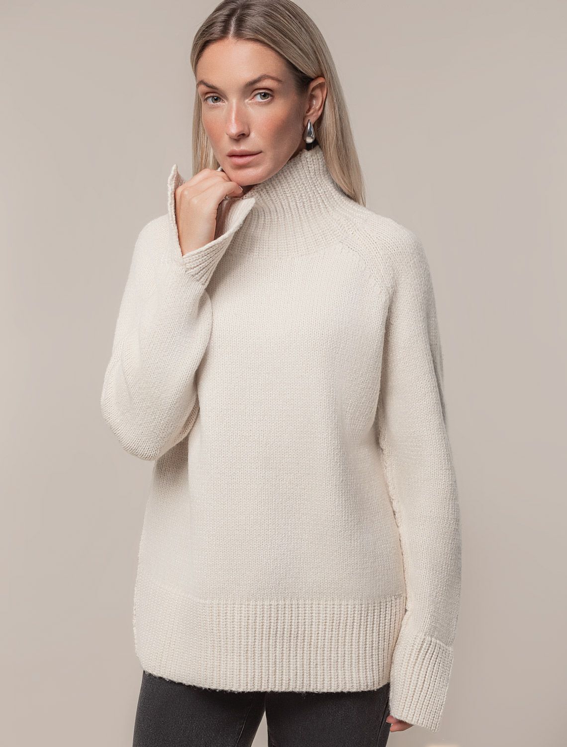 Свитер крупной вязки из уютной пряжи с ангорой и мохером D34.195 овсяный меланж