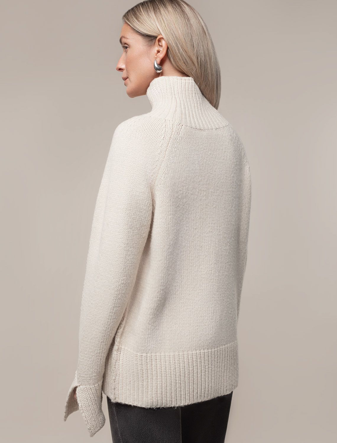 Свитер в овсяном оттенке выполнен из уютной пряжи крупной вязки с ангорой и легким пушистым мохером, поэтому изделие получилось особенно приятным на ощупь. Пряжу укрепили нитями нейлона, благодаря чему изделие не вытянется со временем и сохранит свою форму. Лаконичную модель дополнили металлическим логотипом бренда.
