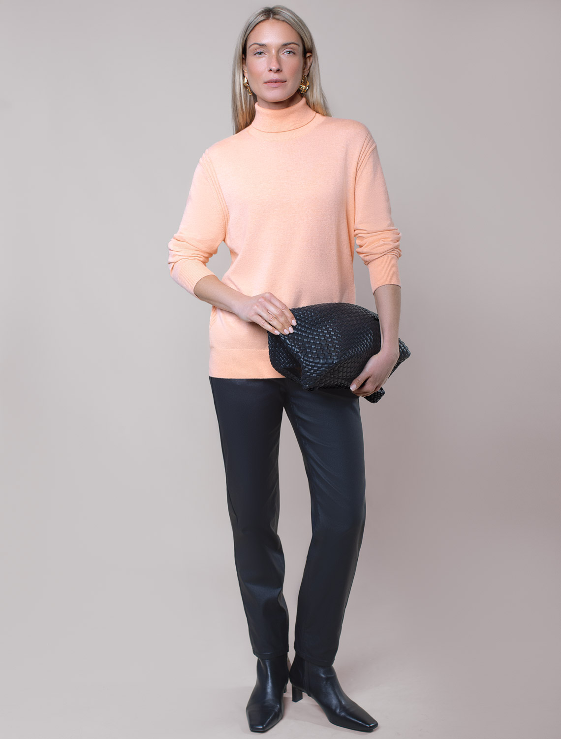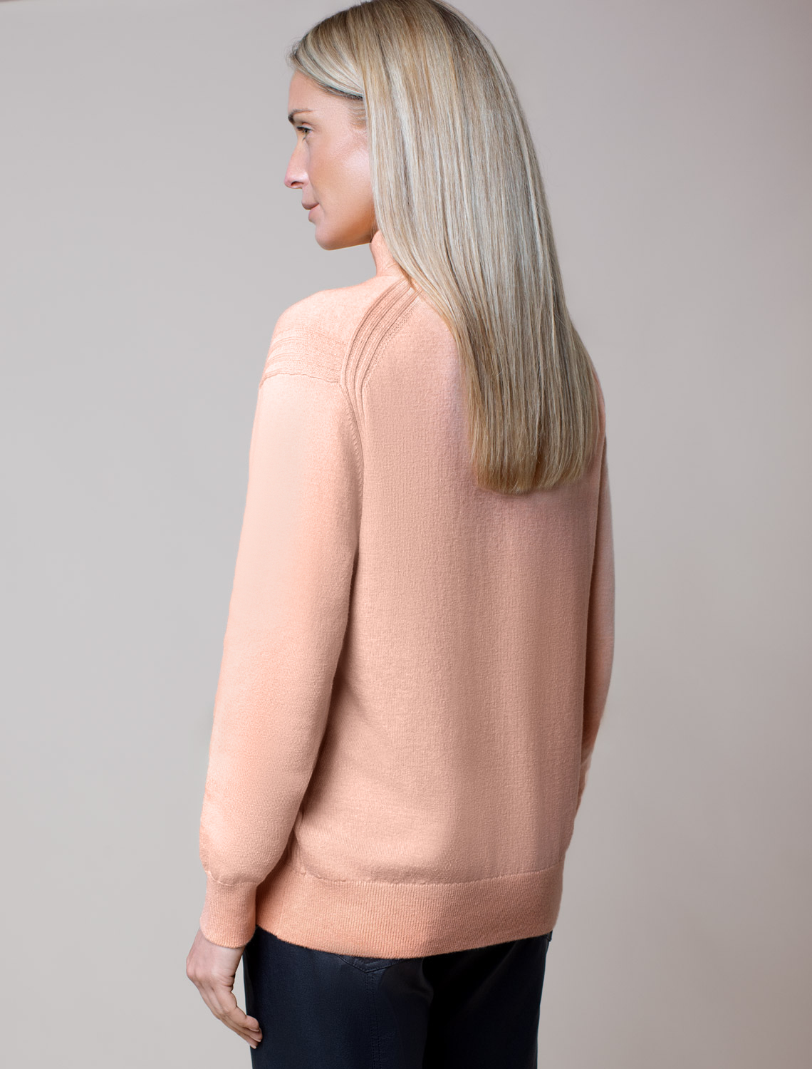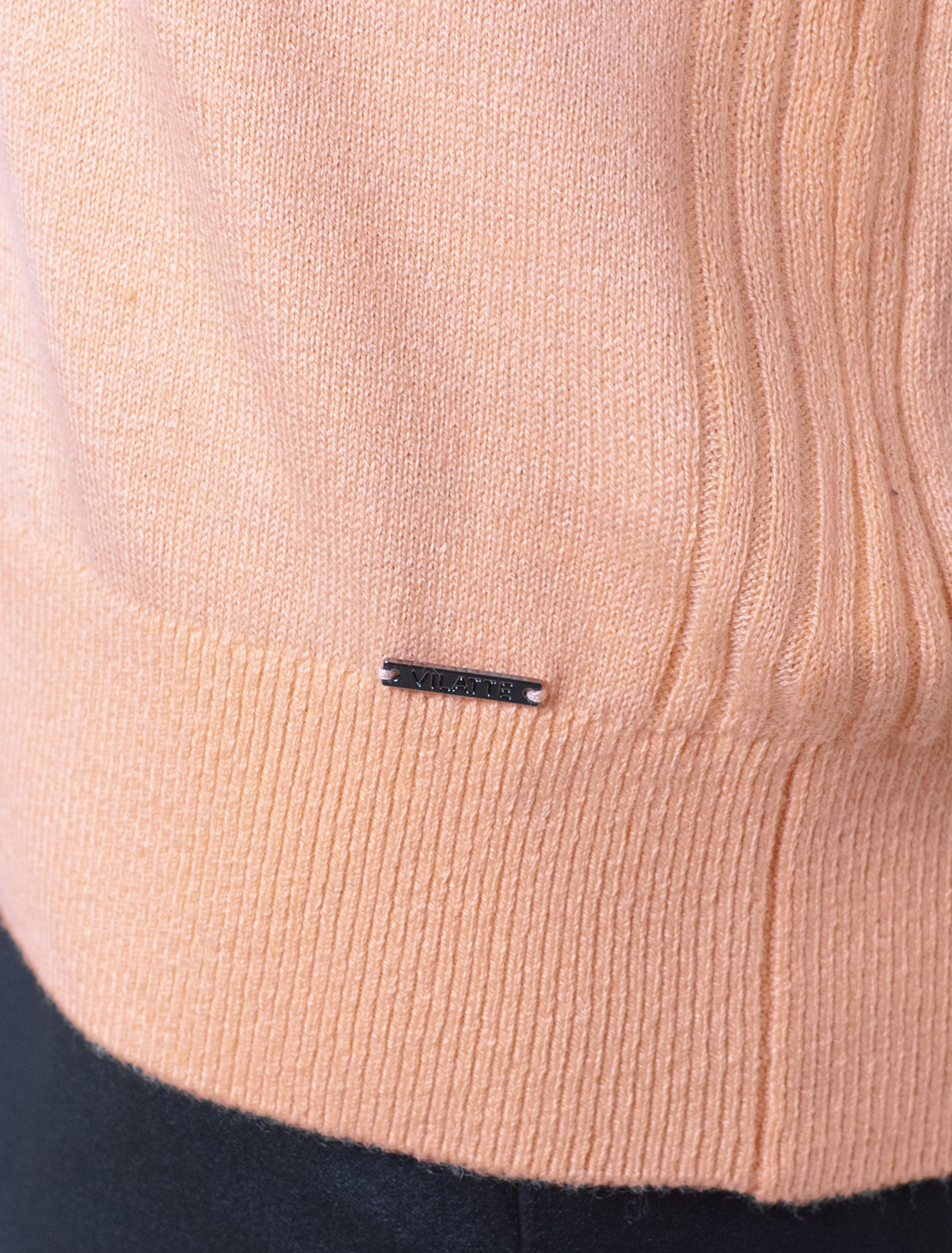 Свитер тонкой вязки выполнен из хлопка с добавлением кашемира. Лаконичная модель дополнена декоративными швами и металлическим логотипом бренда. Мягкая и очень приятная пряжа совершенно не колется, сохраняет тепло при этом не перегревая, гарантируя безупречный комфорт. персиковый