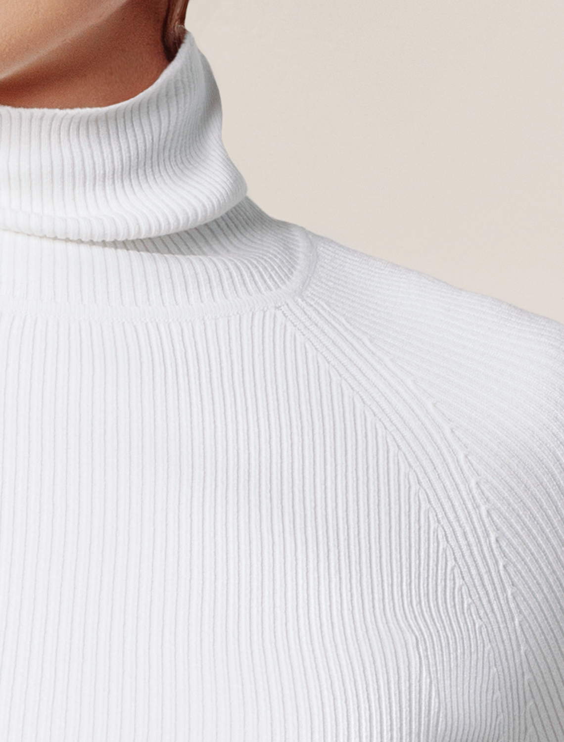 Свитер тонкой вязки в рубчик выполнен из мягкой пряжи на основе вискозы. Изделие почти не ощущается на теле, но при этом поддерживает ощущение уюта в течение всего дня. Не перегревает и поддерживает оптимальный микроклимат. Будет комфортно и в офисе, и на прогулке в городе. Подходит для любого типа фигуры. натуральный белый
