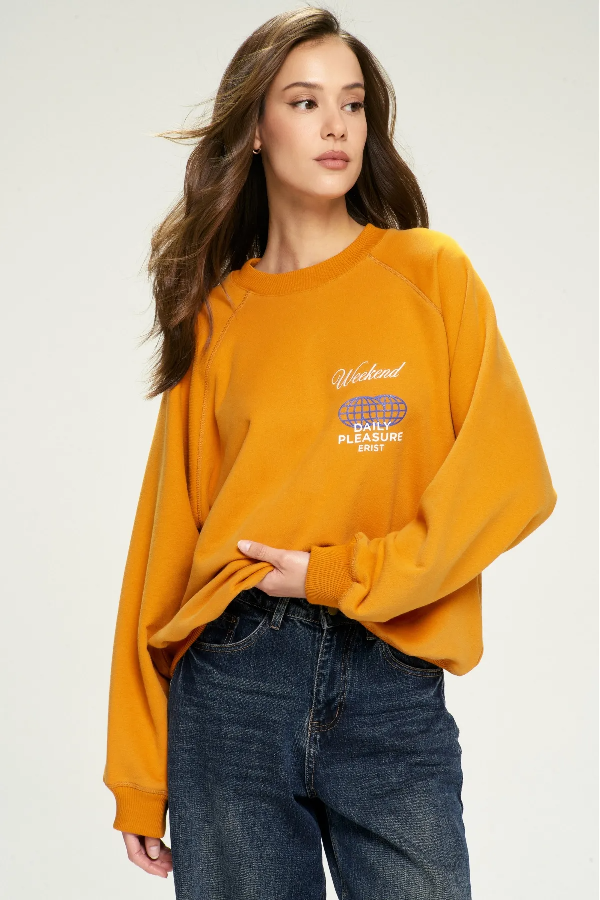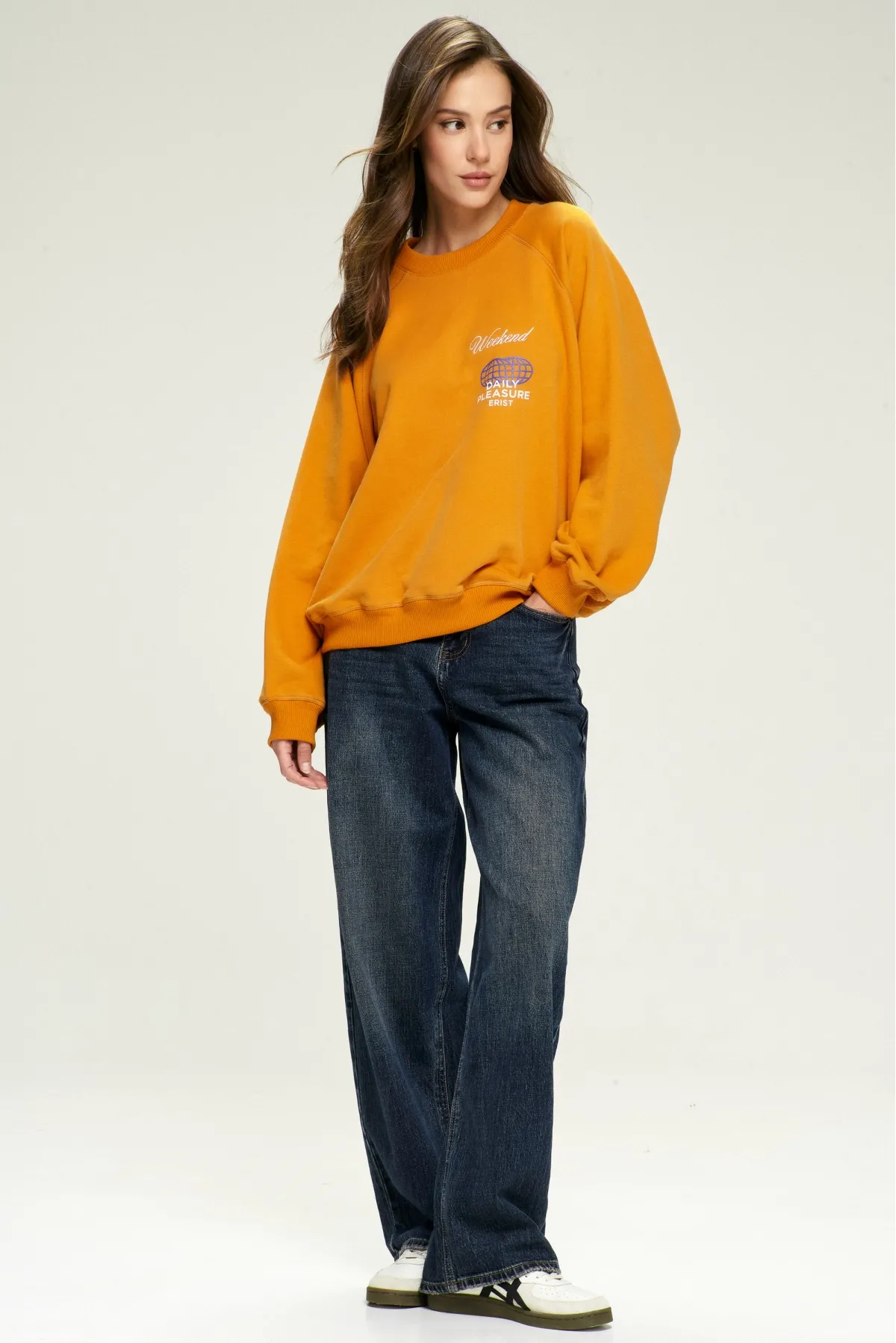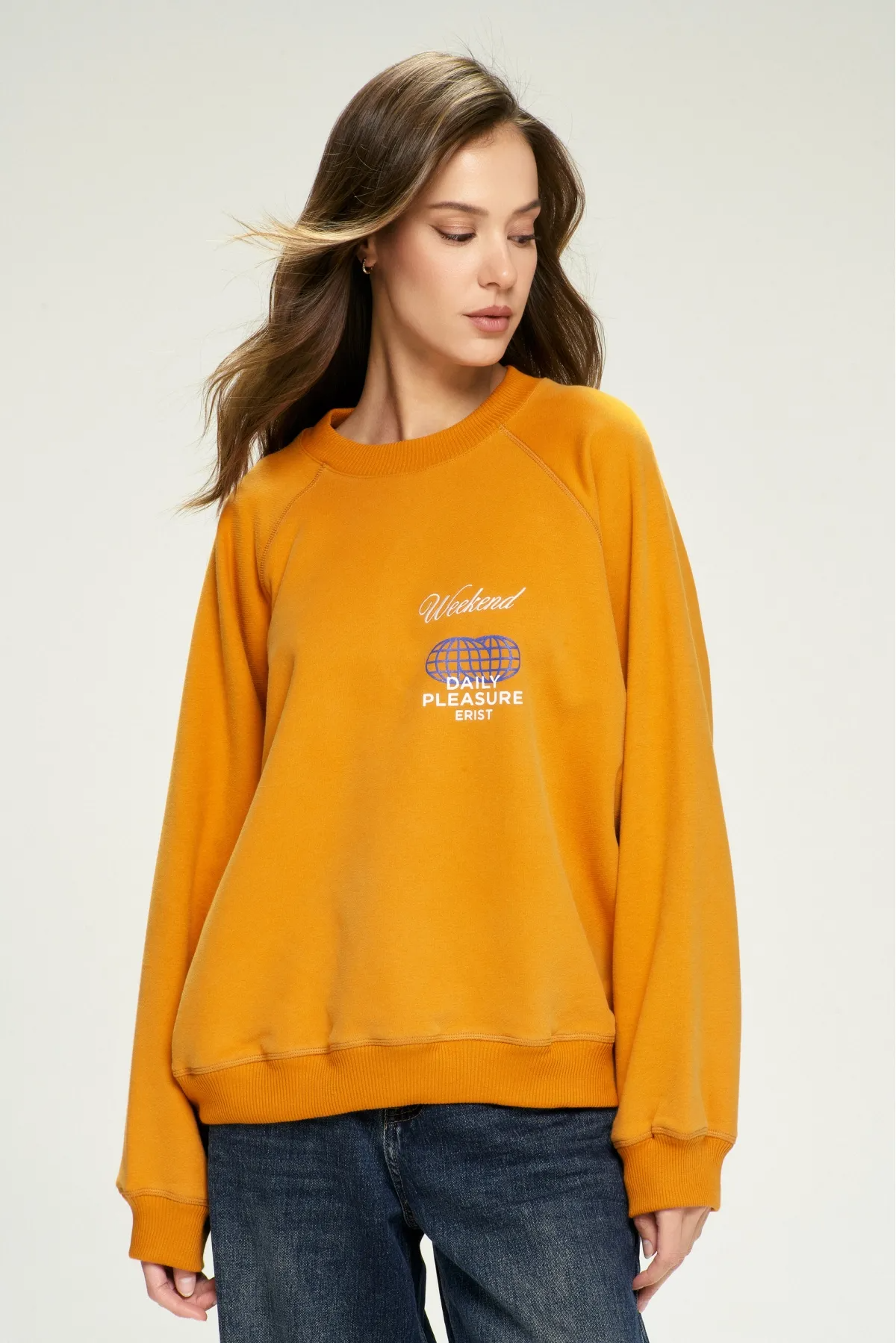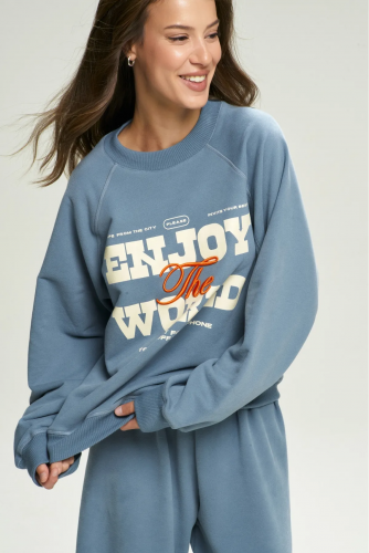 Свободный оверсайз-силуэт с реглан-рукавом и плавной линией плеч создаёт расслабленный образ и дарит полный комфорт движений. Яркий тематический принт на груди придаёт свитшоту характер и подчёркивает ваш индивидуальный стиль.