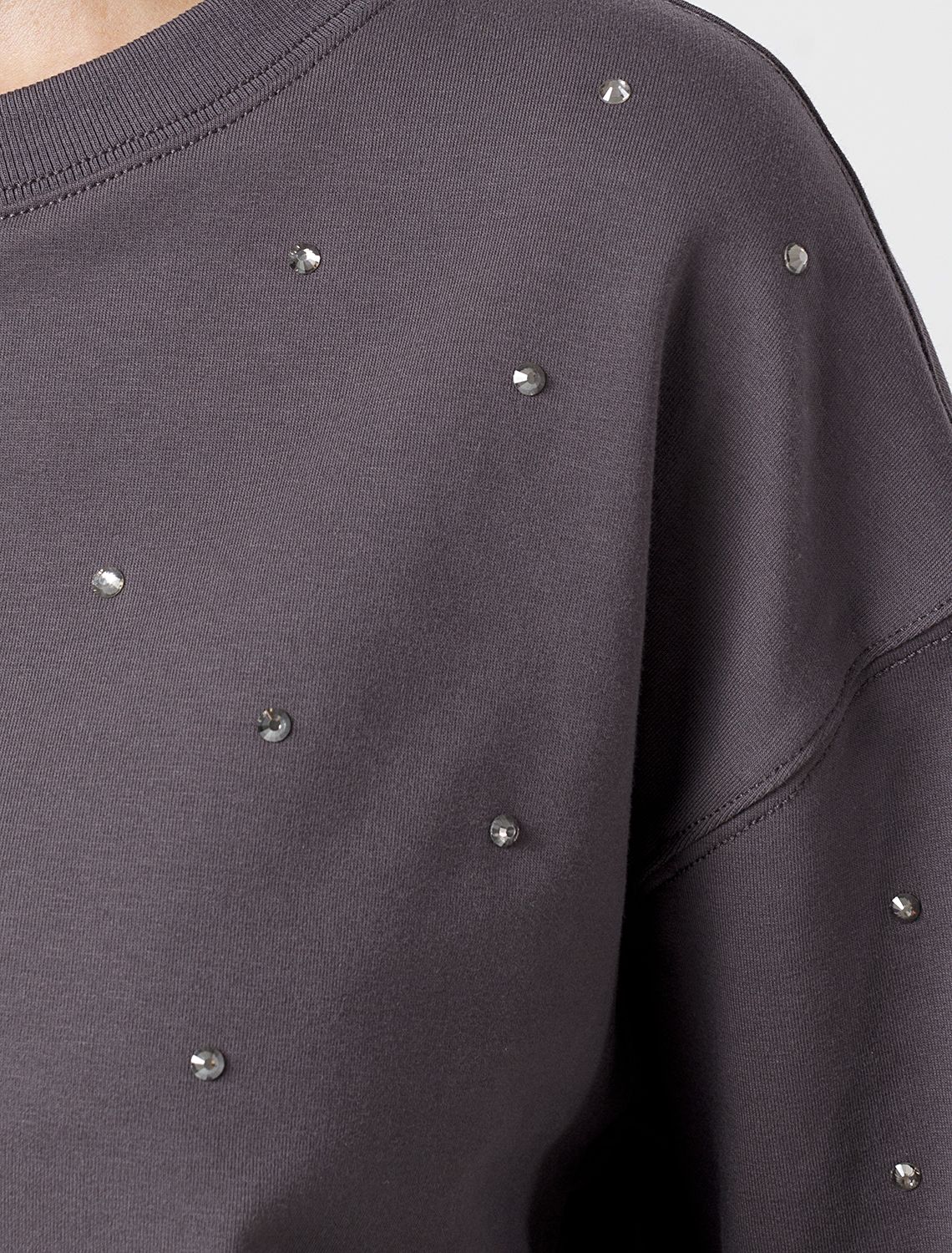 Свитшот из эластичного футера с принтом стразами D49.072 т.серый_стразы