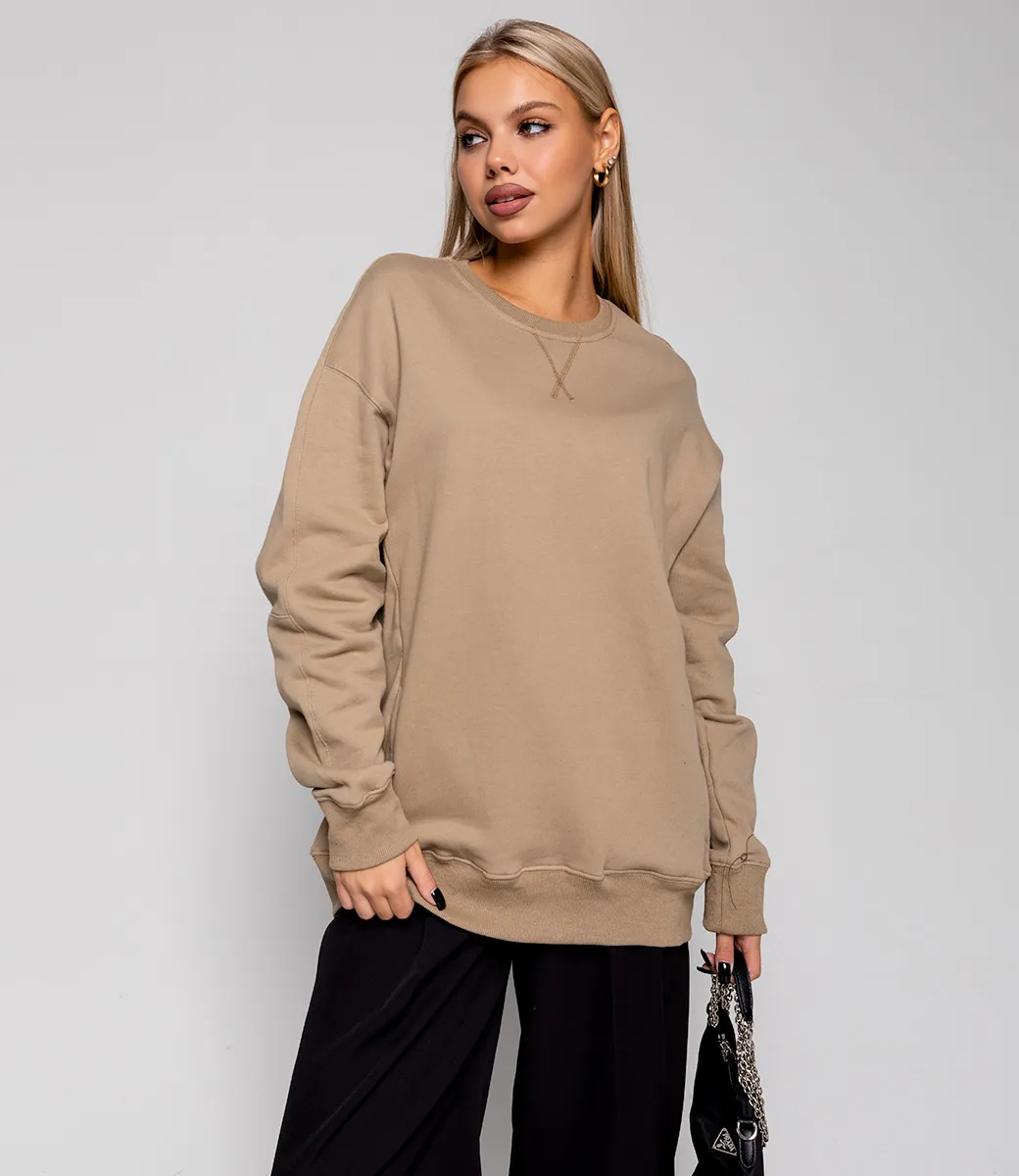 Свитшот свободного покроя выполнен из качественного материала, который не деформируется при стирке и во время носки, благодаря этому однотонный свиншот будет радовать своим видом и дарить приятные тактильные ощущения не один сезон. Хлопок, Полиэстер