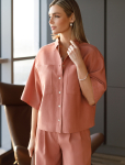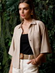 Блузка свободного кроя выполнена из плотного лиоцелла. Застежка на пуговицы из натурального перламутра. Добавление синтетических волокон в составе изделия предотвращает сминаемость. Подходит для любой фигуры. Для создания расслабленного образа, сочетайте в костюме с брюками D24.214, D24.218, шортами D28.054 и юбкой D26.181