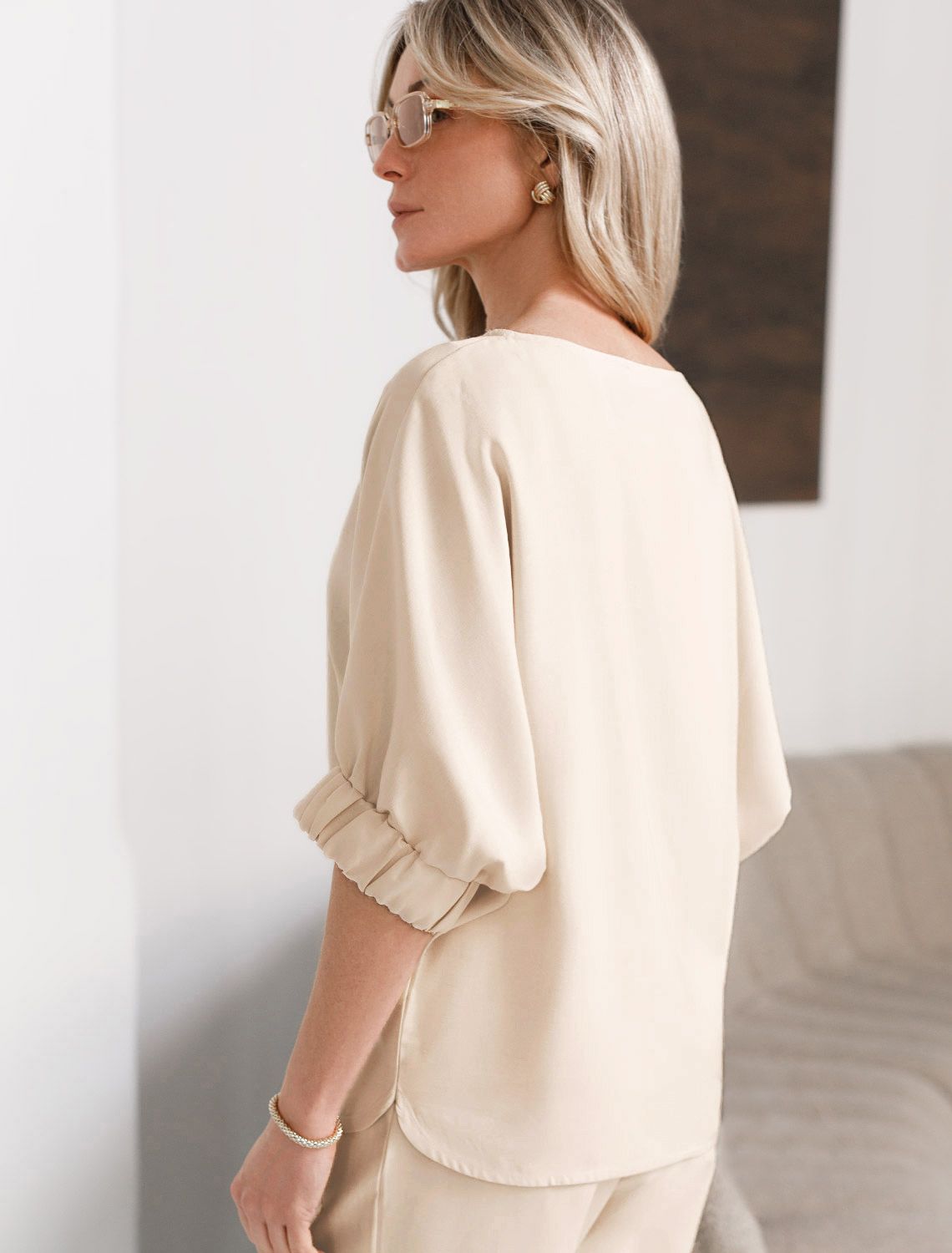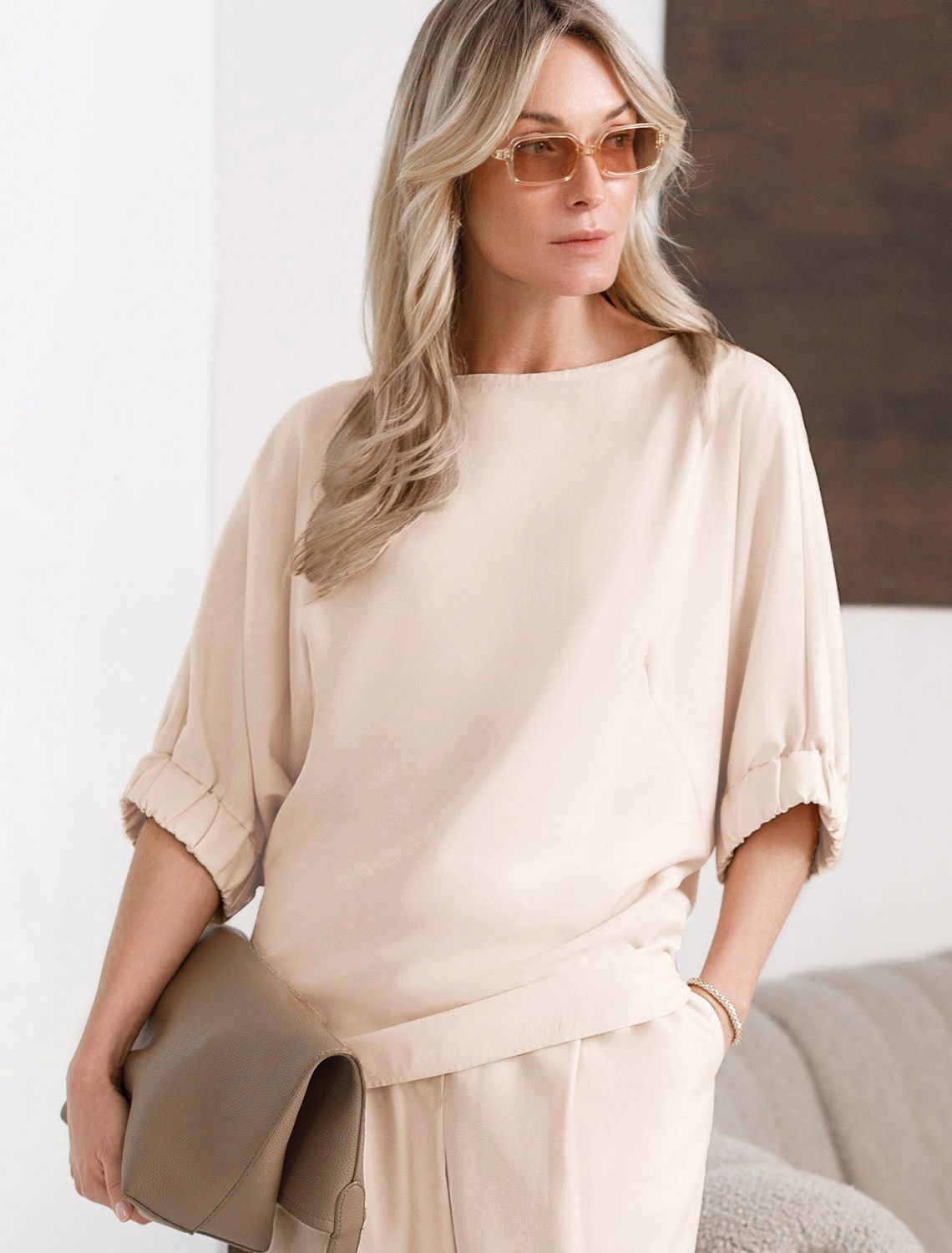 Свободная блузка кокосово-молочного цвета выполнена из плотного лиоцелла. Свободная блузка светло-зеленого цвета выполнена из плотного лиоцелла. Лиоцелл это более дорогой и экологичный вариант вискозы, очень прочный и шелковистый. Современная интерпретация кроя «летучая мышь» дополнена акцентными эластичными манжетами. Эта блузка идеальна для любого типа фигуры, в том числе и на королевские размеры. Этот крой создан для того, чтобы мягко скрыть лишние объемы. Эта повседневная блузка с вырезом лодочка создана для легкого и утонченного стиля. Мягкие линии кроя создают невероятно эффектный образ, который подчеркивает естественную красоту, не стесняя движений, а свободный фасон дарит ощущение абсолютного комфорта и уверенности. Блузка красиво драпируется при движении, создавая летящий, воздушный эффект.