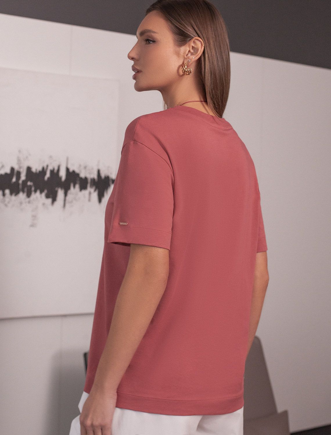 Актуальные цвета подчеркивают современность футболки, делая ее отличным вариантом как для повседневной носки, так и более праздничных случаев. Круглый вырез горловины дополняет общий минималистичный дизайн изделия, создавая аккуратный силуэт. Такой фасон уместен для работы в офисе, для городского стиля, дома, в неформальной обстановке или даже на деловых встречах.