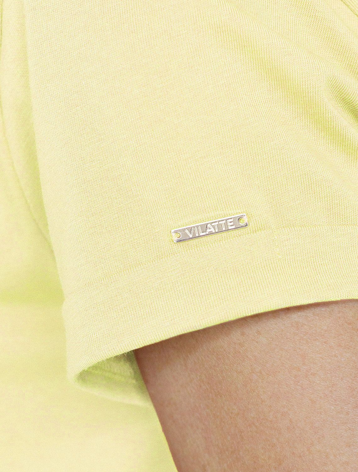 Модная футболка лимонного цвета привлекает внимание своим интересным дизайном и ярким принтом. Благодаря прямому крою изделие комфортно садится на любую фигуру, в том числе на большие размеры, и не сковывает движений. Круглый вырез подчеркивает современный стиль, а натуральный материал из хлопка с добавлением эластана обеспечивает удобство в повседневной носке и приятные тактильные ощущения. Прочность и износостойкая структура сохраняет первоначальную форму футболки после множества стирок. Рукава имеют аккуратные подгибы, что придает изделию завершенность и помогает сохранять аккуратный внешний вид. Принт надписи нанесен красками с устойчивым покрытием, перевод надписи: Exluzive moments collection only - Только коллекция эксклюзивных моментов. Стильная футболка гармонично вписывается в любой гардероб и подойдет для прогулок, отдыха дома или неформальных встреч. Благодаря особенностям кроя модель хорошо сидит, скрывая недостатки и подчеркивая достоинства. Удобная футболка идеально сочетается с базовыми вещами, позволяя создавать новые интересные образы каждый день.