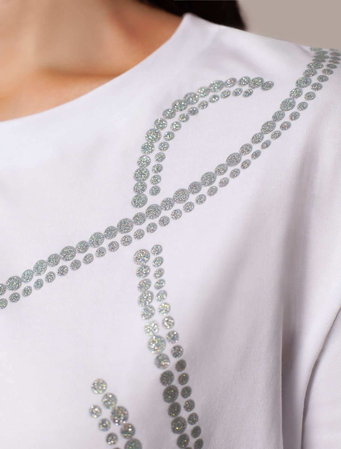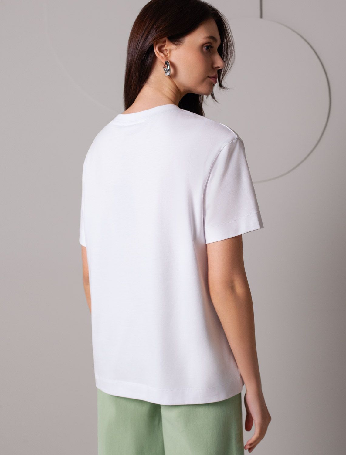 Модная футболка белого цвета привлекает внимание своим интересным дизайном и ярким принтом. Благодаря прямому крою изделие комфортно садится на любую фигуру, в том числе на большие размеры, и не сковывает движений. Круглый вырез подчеркивает современный стиль, а натуральный материал из хлопка с добавлением эластана обеспечивает удобство в повседневной носке и приятные тактильные ощущения. Прочность и износостойкая структура позволяют сохранять свежий внешний вид после множества стирок. Принт в виде букв логотипа бренда нанесен красками с устойчивым покрытием. Стильная футболка гармонично вписывается в любой гардероб и подойдет для прогулок, отдыха или неформальных встреч. Благодаря особенностям кроя модель хорошо сидит, скрывая недостатки и подчеркивая достоинства. Яркая футболка идеально сочетается с базовыми вещами, позволяя создавать новые интересные образы каждый день.