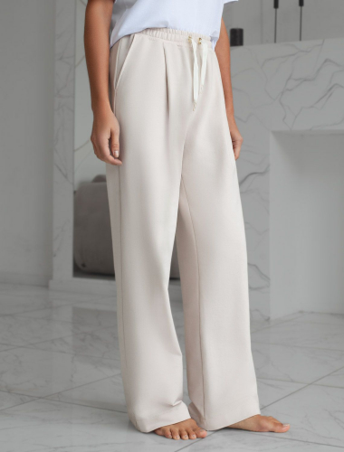 Свободные брюки из тонкого премиального футера с эластаном D44.140 бежевый