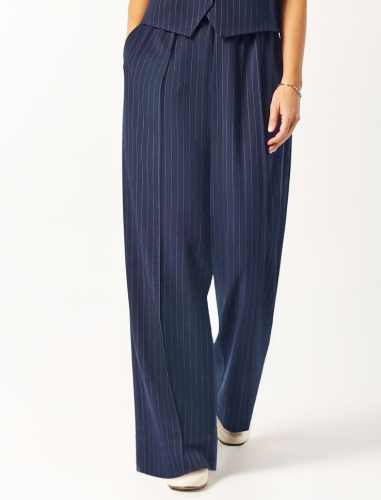 Брюки свободного кроя выполнены из плотного лиоцелла. Модель дополнена карманами и поясом с эластичной резинкой и регулируемым шнурком с золотистой фурнитурой. Ткань изделия отлично держит форму, плавно драпируется и не просвечивает. В теплое время года приятно охлаждает кожу. Добавление синтетических волокон в составе изделия, предотвращает сминаемостьи поддерживает формоустойчивость. Брюки сочетаются в костюме с топом D23.063, блузкой D29.266, D29.267 и жилетом D27.002