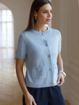 Легкий свободный джемпер светло-голубого цвета с круглым вырезом идеально подходит на весну и лето. Тонкая вязка из вискозы дарит приятный комфорт и ощущение свежести в теплую погоду. Универсальная длина позволяет сочетать джемпер с разными элементами гардероба. Джемпер отлично смотрится на больших размерах благодаря продуманному крою и свободному фасону. Широкие рукава создают воздушность и делают силуэт особенно женственным. Этот джемпер с рукавом 3/4 станет незаменимой частью гардероба в сезоны, когда хочется легкости и элегантности одновременно. Лаконичный дизайн обеспечивает простоту комбинирования с другими вещами и будет универсальной базой для создания разнообразных комплектов — от офисного до непринужденного городского стиля.