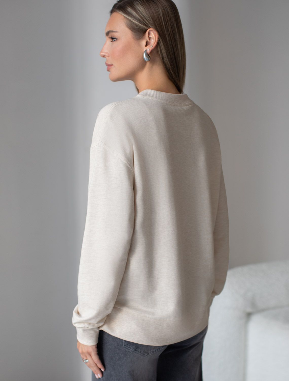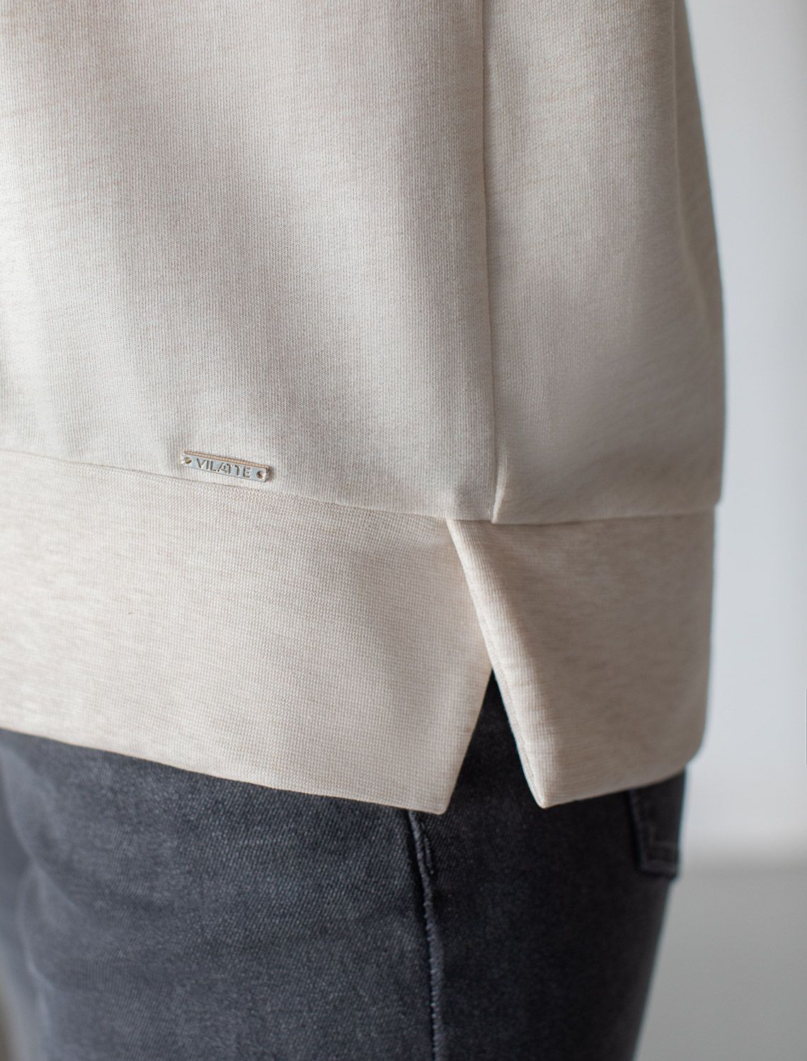 Стильный свитшот бежевого цвета с эффектом меланж из премиального футера двухнитки с эластаном сочетает в себе комфорт и оригинальность. Джемпер выполнен из натурального хлопка, который обеспечивает мягкость и дышащие свойства ткани. Нежный материал дарит ощущение уюта в любое время года, а премиальное качество изготовления гарантирует долговечность и сохранение формы после множества стирок. Особенность изделия — спущенная линия плеча и аккуратные разрезы, которые добавляют современный акцент и делают образ более выразительным. Принт в виде листиков придает индивидуальность, позволяя выделиться без лишней вычурности. Дополнен металлическим логотипом бренда.