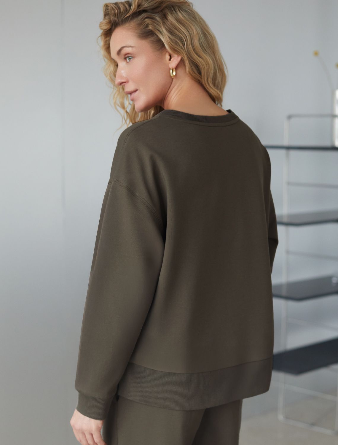Свободный свитшот с принтом и разрезами из эластичного футера двухнитки без начеса D49.167 хаки_athleisure mood