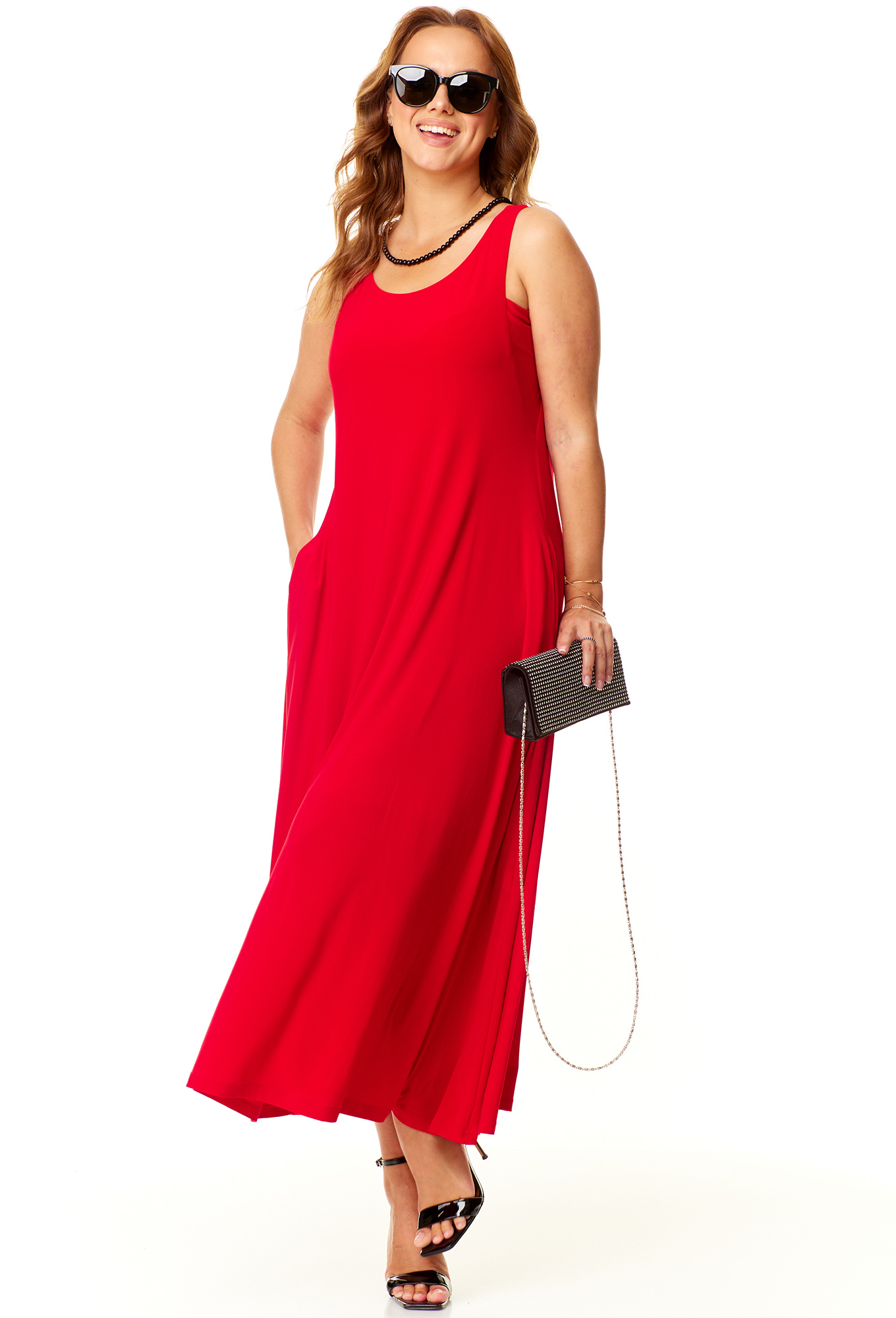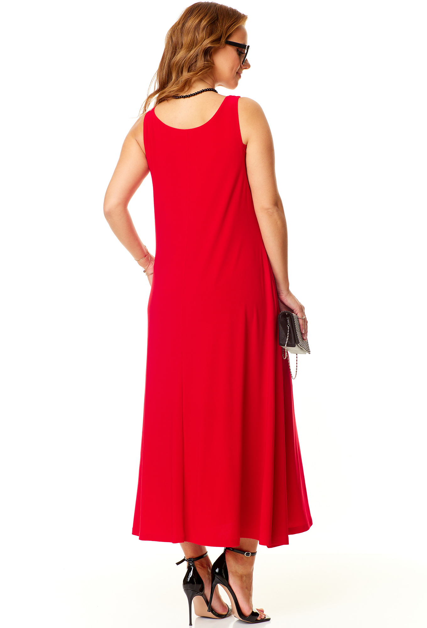 Стильный, элегантный, красивый, с прекрасной посадкой, женский сарафан из трикотажной ткани хорошего качества «масло». Сарафан с глубоким вырезом как спереди, так и сзади, на подкладке из той же ткани, что подчеркивает насыщенность цвета. По вырезу рукав сбоку переходит в кокетку, что придает элегантность и удобство при носке. По бокам функциональные карманы. Сарафан полуприлегающего силуэта с хорошим расклешением книзу. При желании его можно носить с ремнем,но в комплект он не входит.