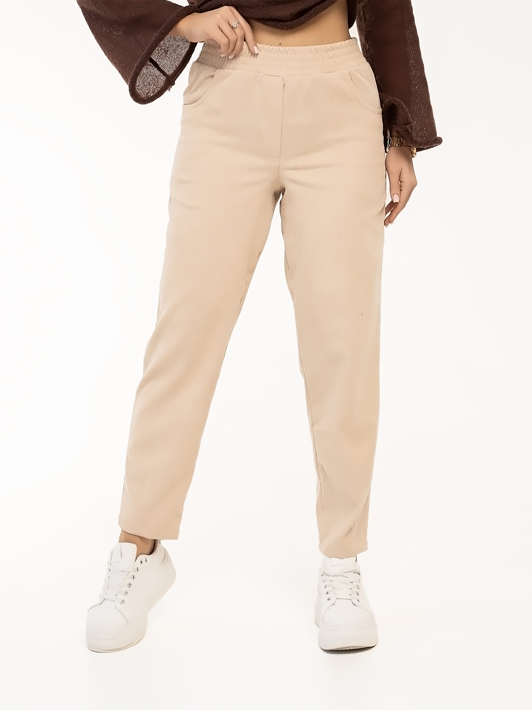 Брюки бананы вельветовые становятся актуальны с наступлением прохладной погоды. Это основа базового гардероба женщины и девушки. Брюки вельветовые со средней посадкой зауженные к низу заменят джоггеры, карго, клеш с разрезами , палаццо, широкие трубы и кожаные брюки. Идеально сочетаются с водолазками, а также блузками, худи, джемперами. Дополните их берцами и зимой вы не замерзнете. Деловые брючки с бархатной текстурой подарят уютное тепло и ощущение комфорта. Mодель подойдет любому типу фигуры и для любого возраста - для женщин, девушек, подростков.