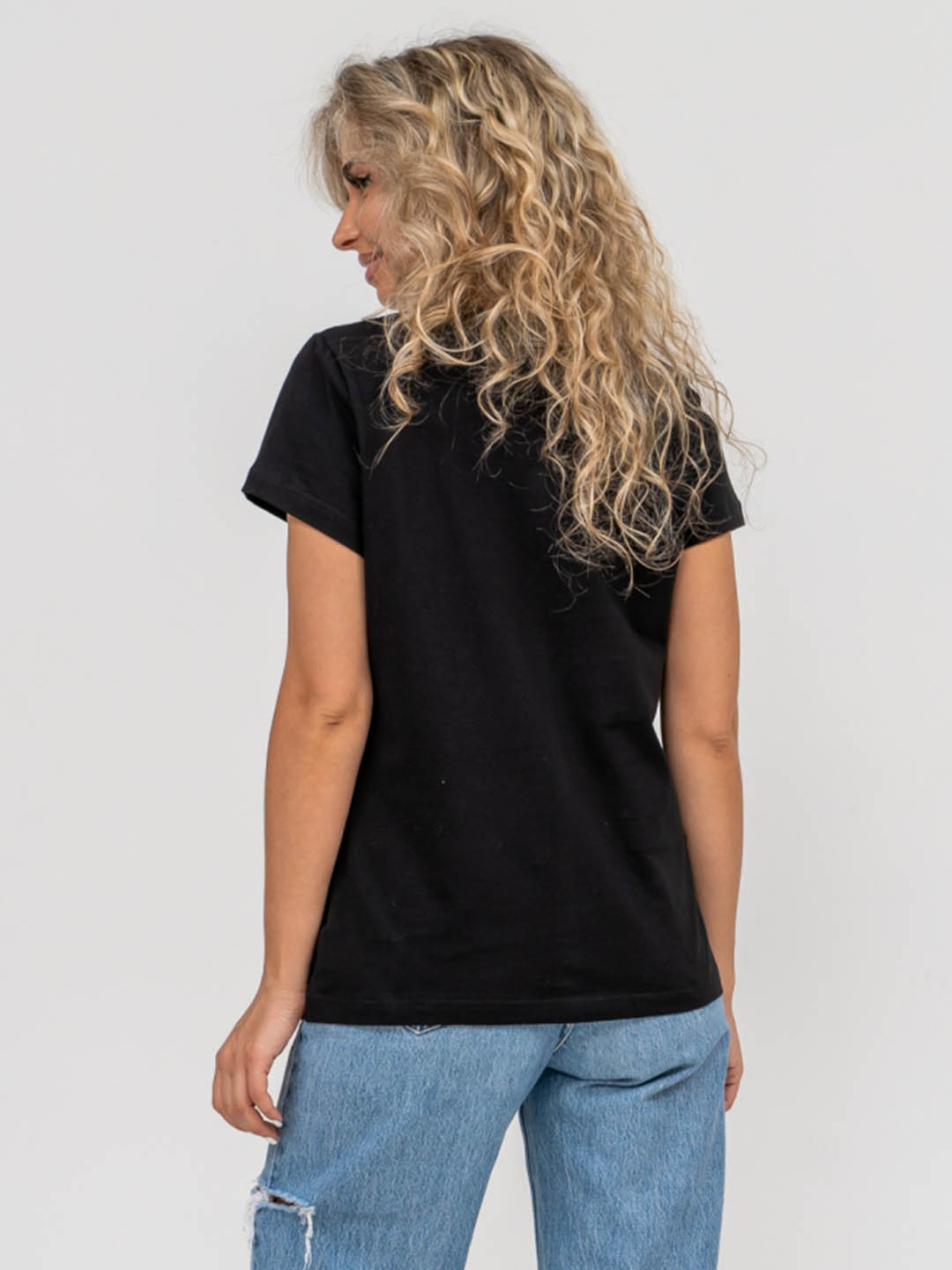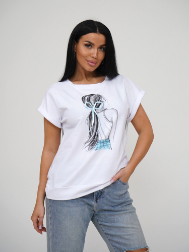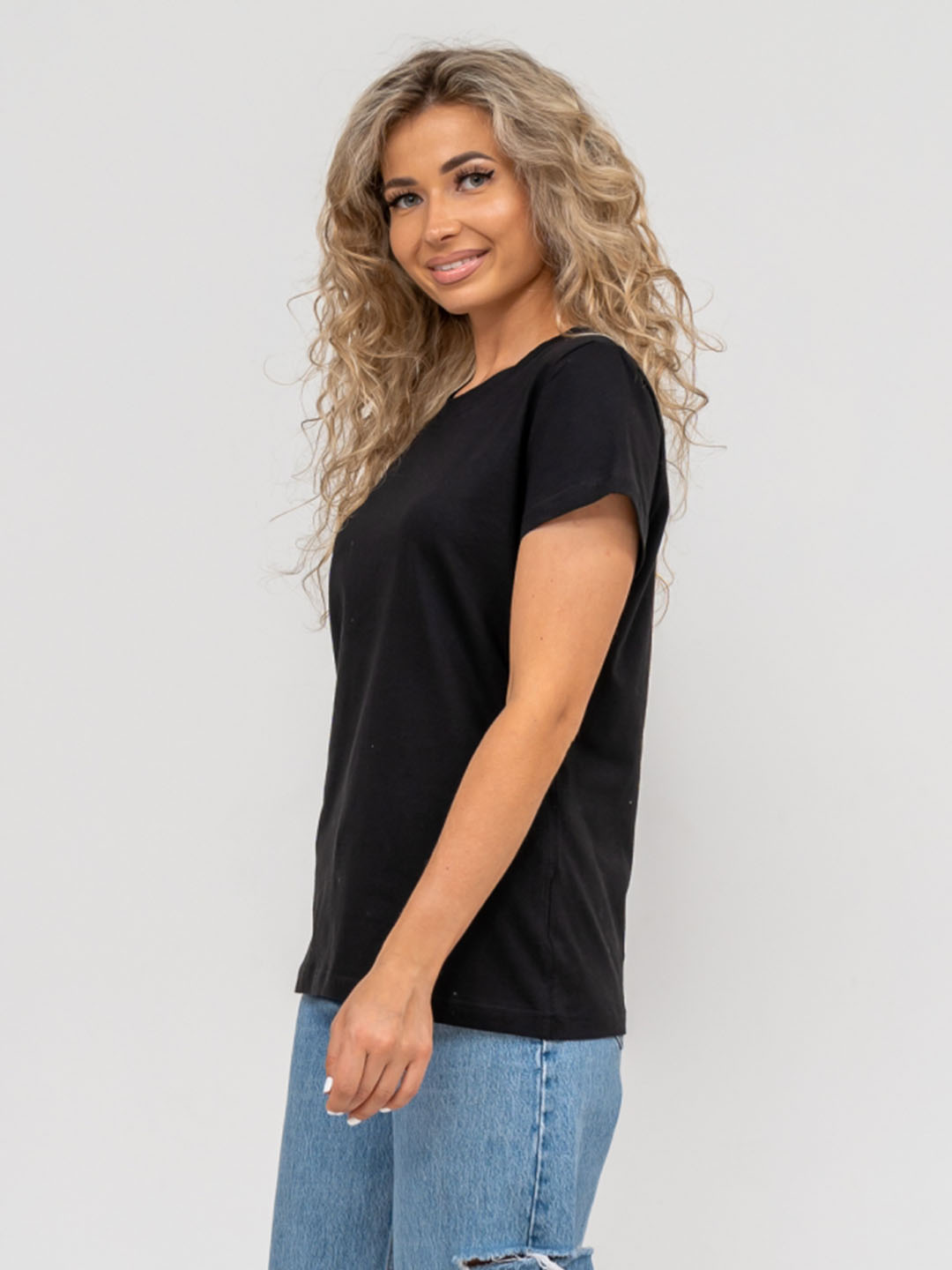 Футболка женская - базовая из натурального хлопкового полотна. Вырез горловины О-образный. Рукав втачной, базового кроя.