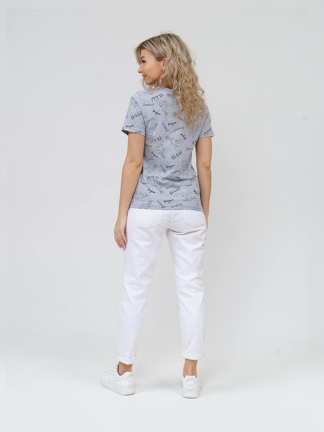 Молодежная футболка прямой силуэтной формы с О-образной горловиной, длиной до уровня бедер.