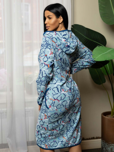 Теплый халат из турецкой махры на молнии с капюшоном, длиной до колена. Гармонично подобранные цвета, идеальная посадка по фигуре, оторочка контрастным кантом — все это создает шикарный образ и делает повседневный халатик стильным и нарядным.