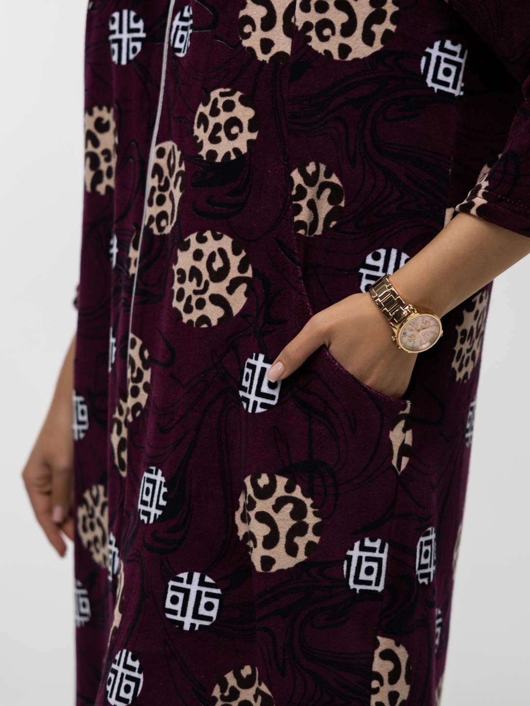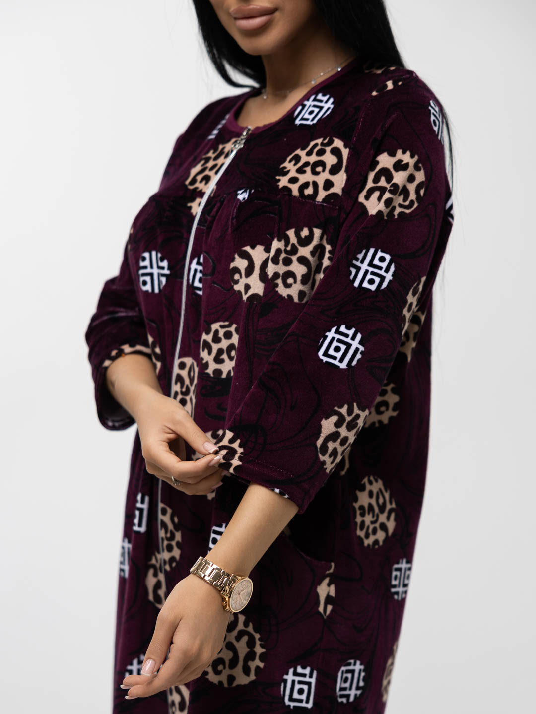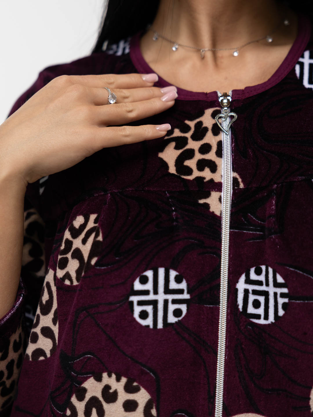 Домашний халат из турецкого велюра, на молнии с рукавом 3/4, отрезной кокеткой и складками по груди. Удобная посадка и большие карманы добавляют комфорта. Отлично подойдет для подарка близкому человеку.