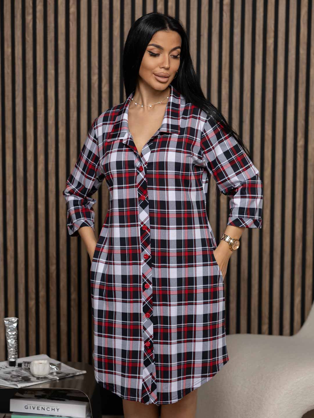Женский халат из 100% хлопка, длиной до колена, с отложным воротником и застежкой на пуговицы, ультрасовременный материал со стильным рисунком, придают данной модели особую роскошь. Удобный втачной рукав, длиной 3/4 подарит свободу в движении, в боковых швах удобные и вместительные карманы.