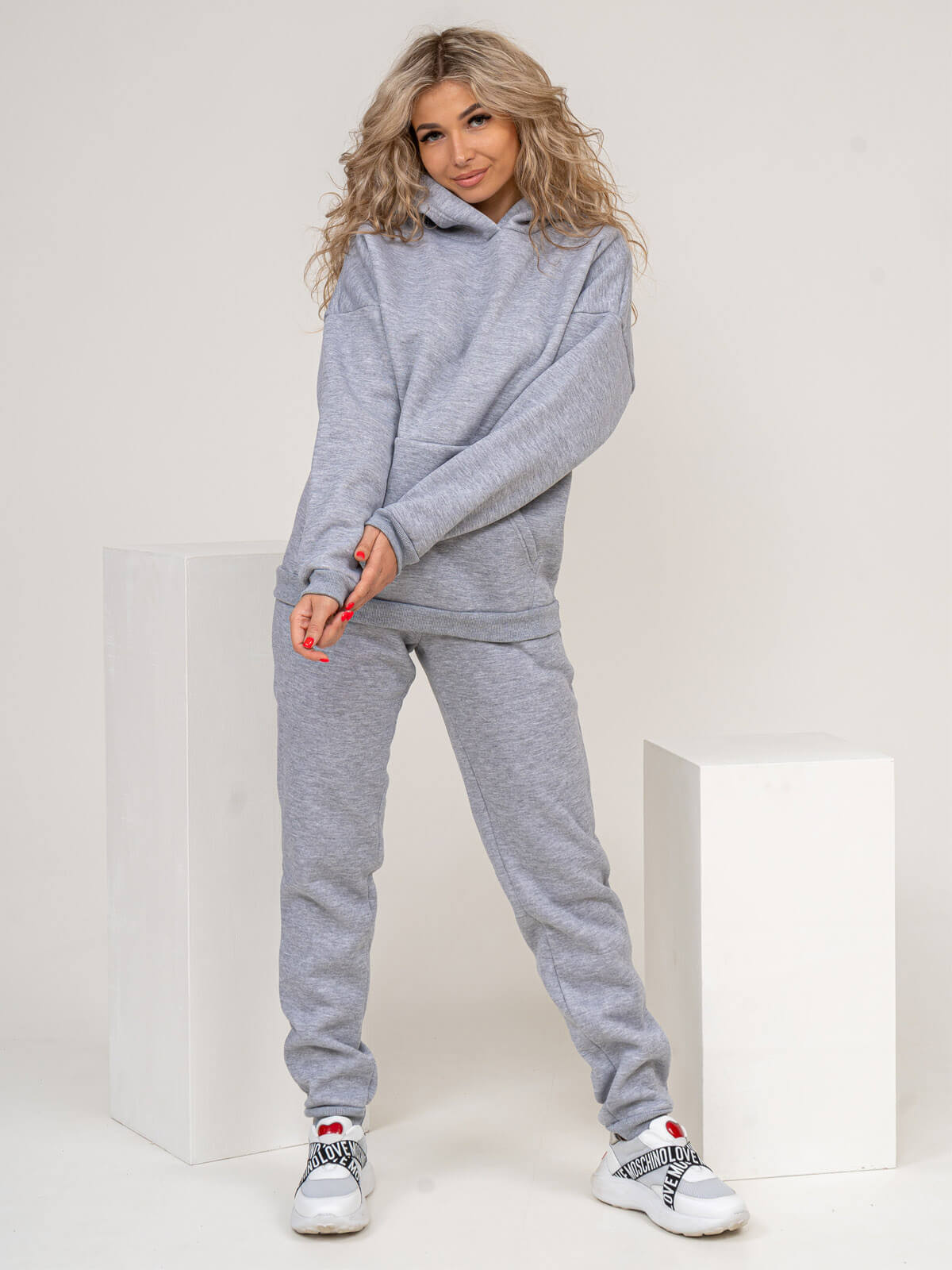 Женский трикотажный костюм из футера с начесом. Толстовка в стиле oversize со спущенной линией плеча и капюшоном. На полочке карман - кенгуру. Брюки полуприлегающего силуэта, с боковыми карманами с отрезным бочком. Отделка из ткани в рубчик, по низу толстовки, рукавам и по низу брюк. Костюм идеально подойдет для сезона осень-зима, в нем вы будете чувствовать себя комфортно в прохладную погоду. Модные тренды от бренда Текс-плюс.Ru придадут вашему образу неповторимость, а премиальное качество подарит незабываемое ощущение комфорта.