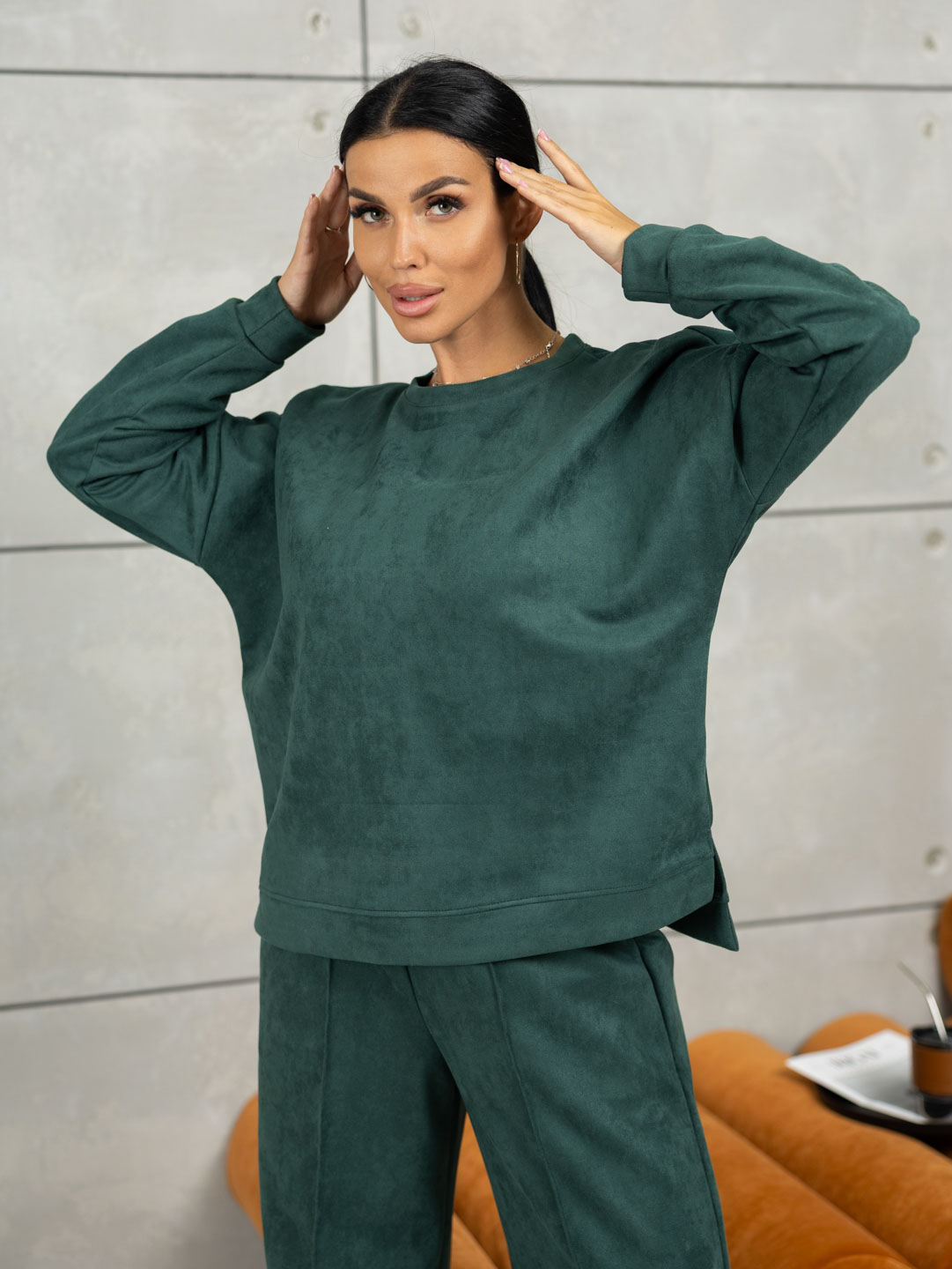 Почувствуйте себя королевой комфорта и стиля с нашим новым брючным костюмом! Двойка выполнена из мягкой и приятной на ощупь замши – прекрасный выбор на весну и осень. Оверсайз крой свитшота скрывает недостатки фигуры, разрезы по бокам и удлиненная спинка придают изюминку образу. А свободные штаны палаццо со стрелками – настоящая находка для современной девушки. Качественная одежда в стиле спорт-шик дарит уверенность себе и отличное настроение!