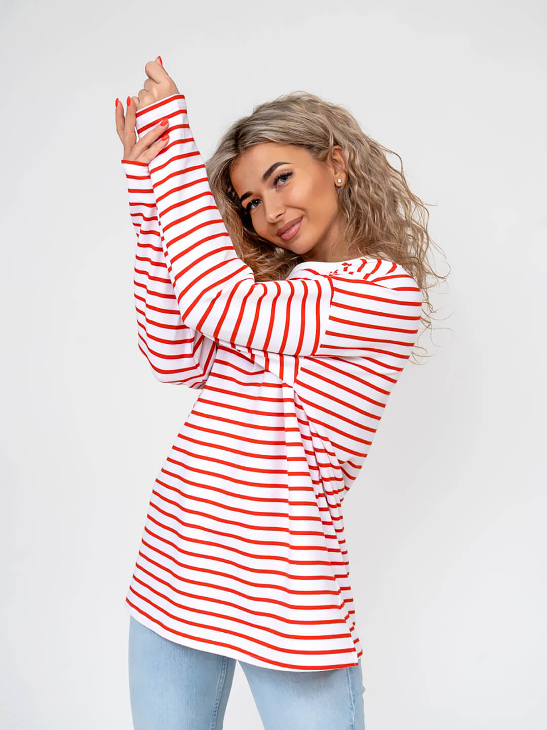 Базовая тельняшка идеально подойдет для составления множества модных аутфитов. Тельняшка в современном прочтении-это обязательно "оверсайз", качественный и невероятно комфортный трикотаж, удлиненные рукава и безупречная посадка! Модель выполнена из европейского трикотажного полотна, качества пенье.