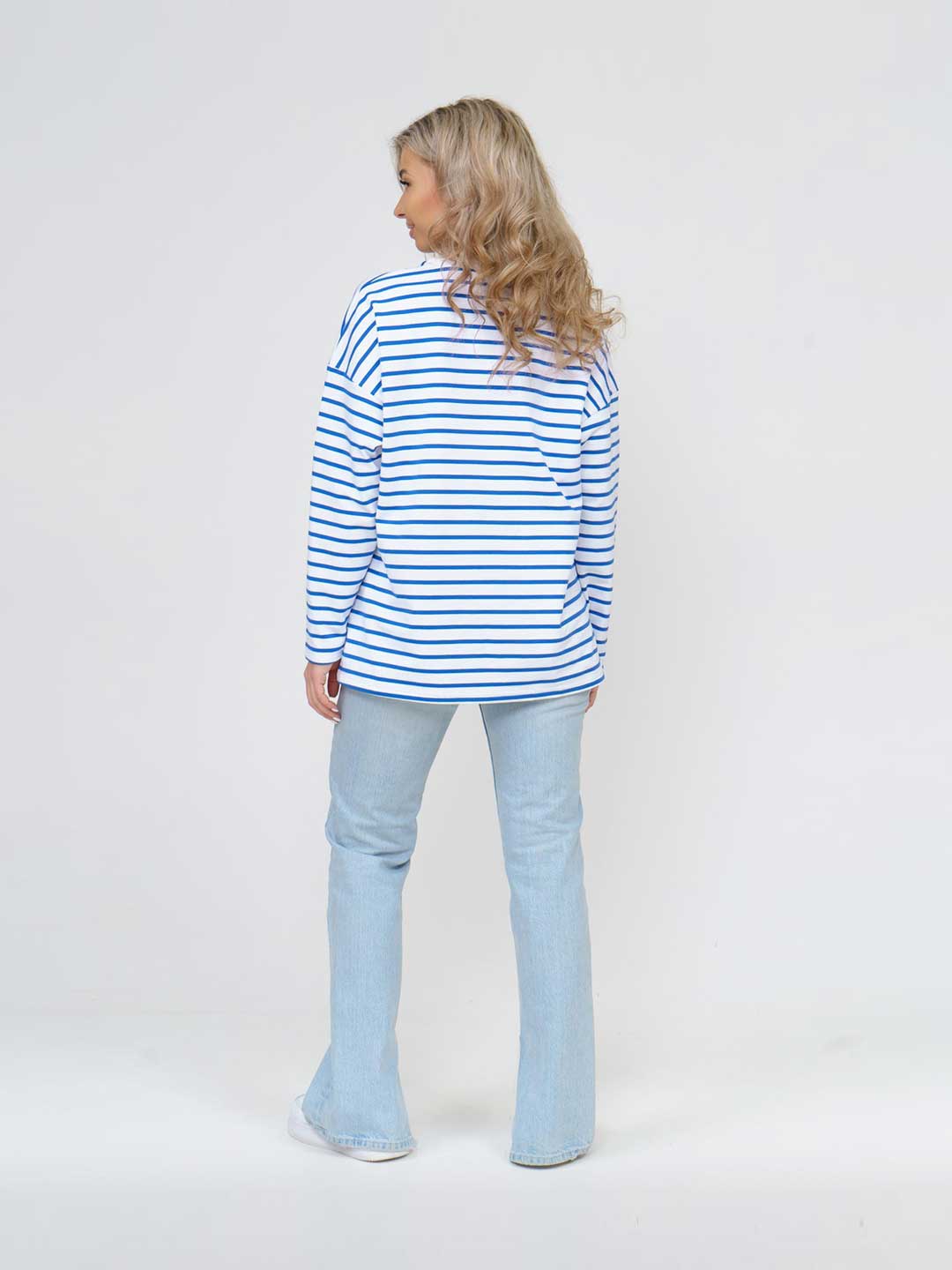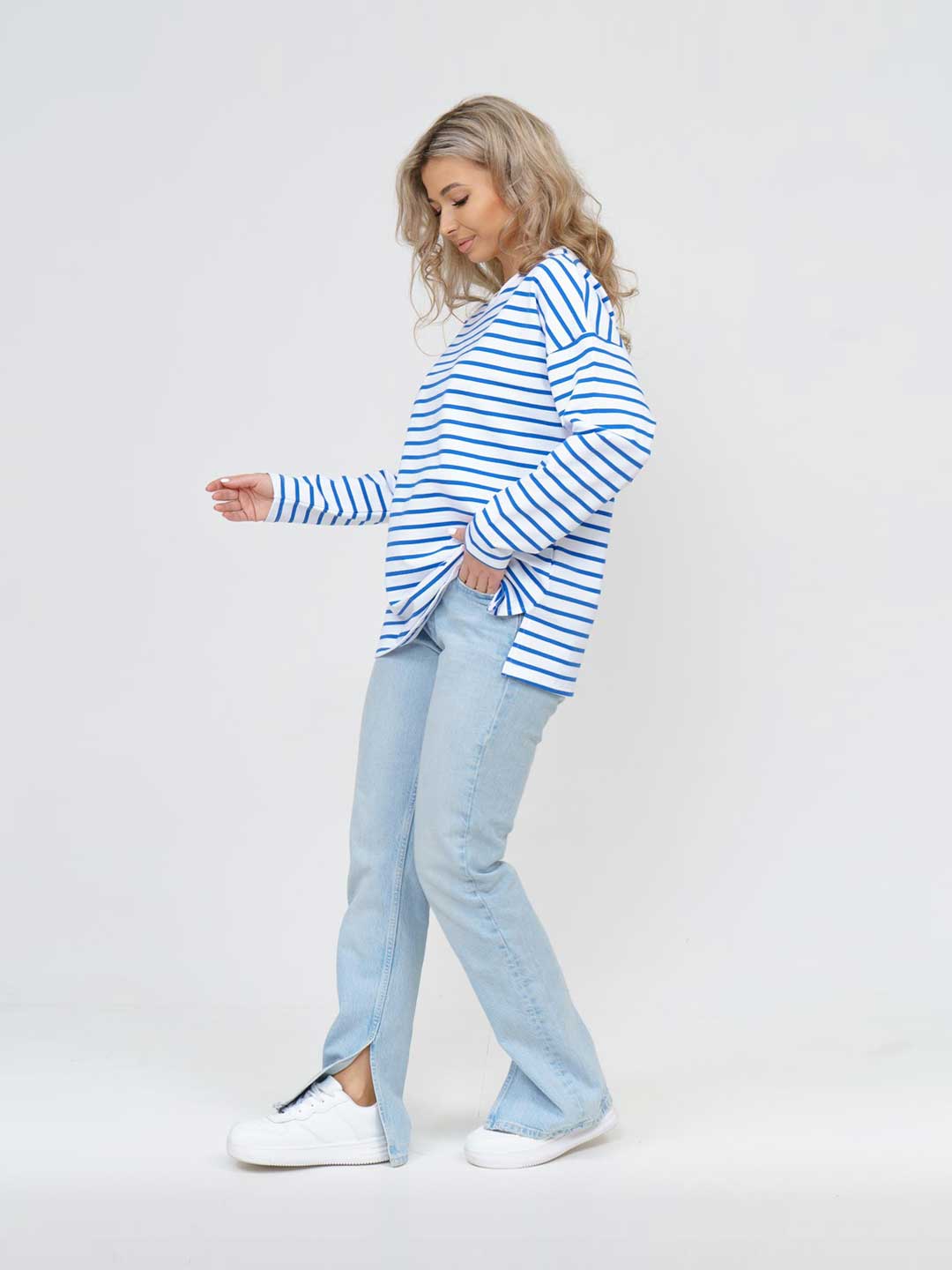 Базовая тельняшка идеально подойдет для составления множества модных аутфитов. Тельняшка в современном прочтении-это обязательно "оверсайз", качественный и невероятно комфортный трикотаж, удлиненные рукава и безупречная посадка! Модель выполнена из европейского трикотажного полотна, качества пенье.