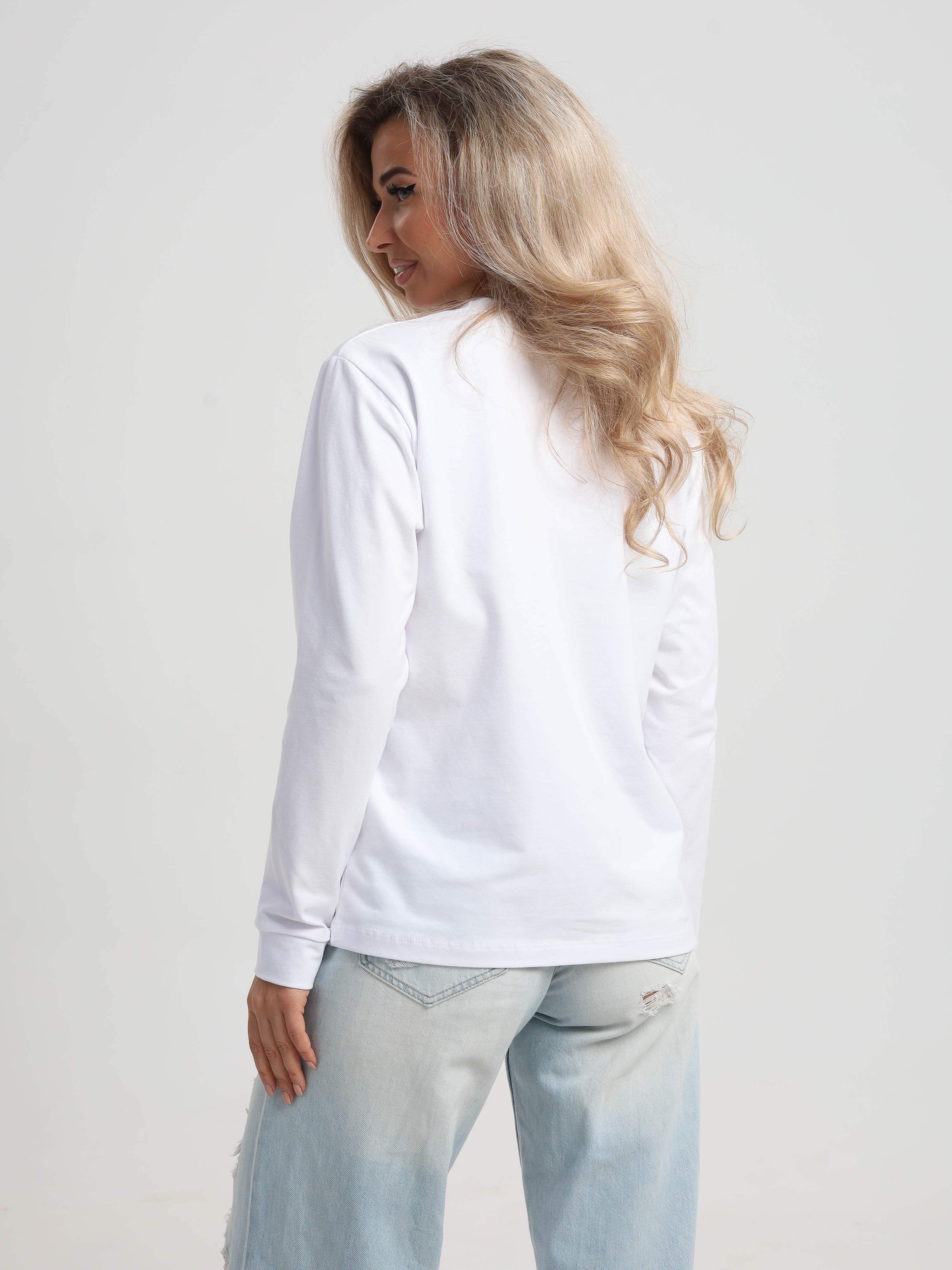 Лонгслив женский из мягкого, приятного к телу трикотажного полотна. Модель имеет длинный втачной рукав с манжетами и округлую горловину. Стильный интересный вариант на каждый день.
