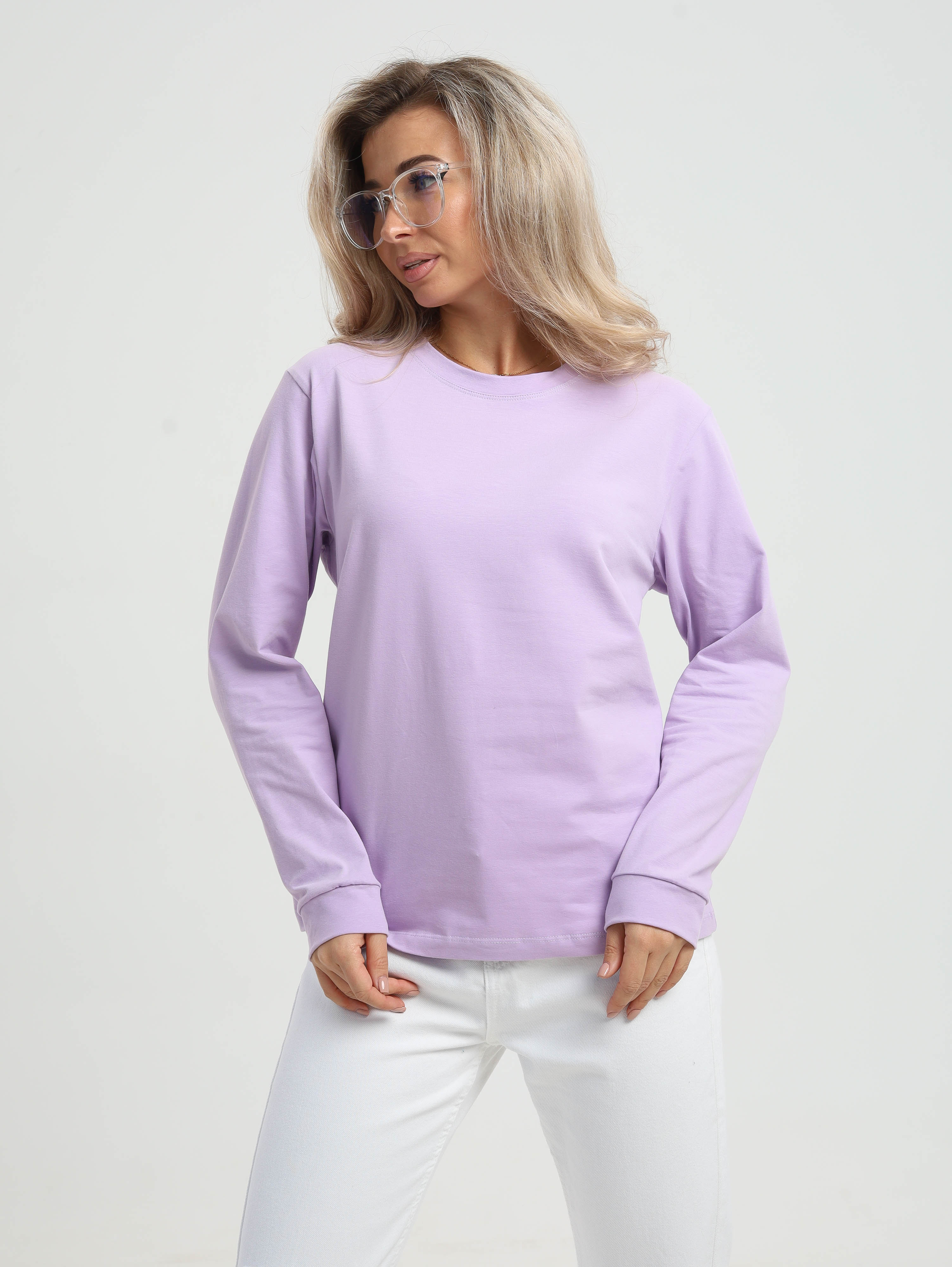 Лонгслив женский из мягкого, приятного к телу трикотажного полотна. Модель имеет длинный втачной рукав с манжетами и округлую горловину. Стильный интересный вариант на каждый день.