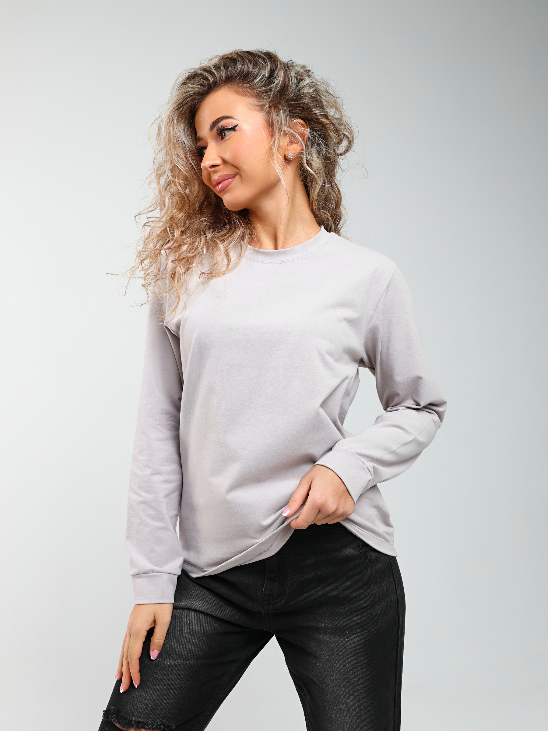 Лонгслив женский из мягкого, приятного к телу трикотажного полотна. Модель имеет длинный втачной рукав с манжетами и округлую горловину. Стильный интересный вариант на каждый день.