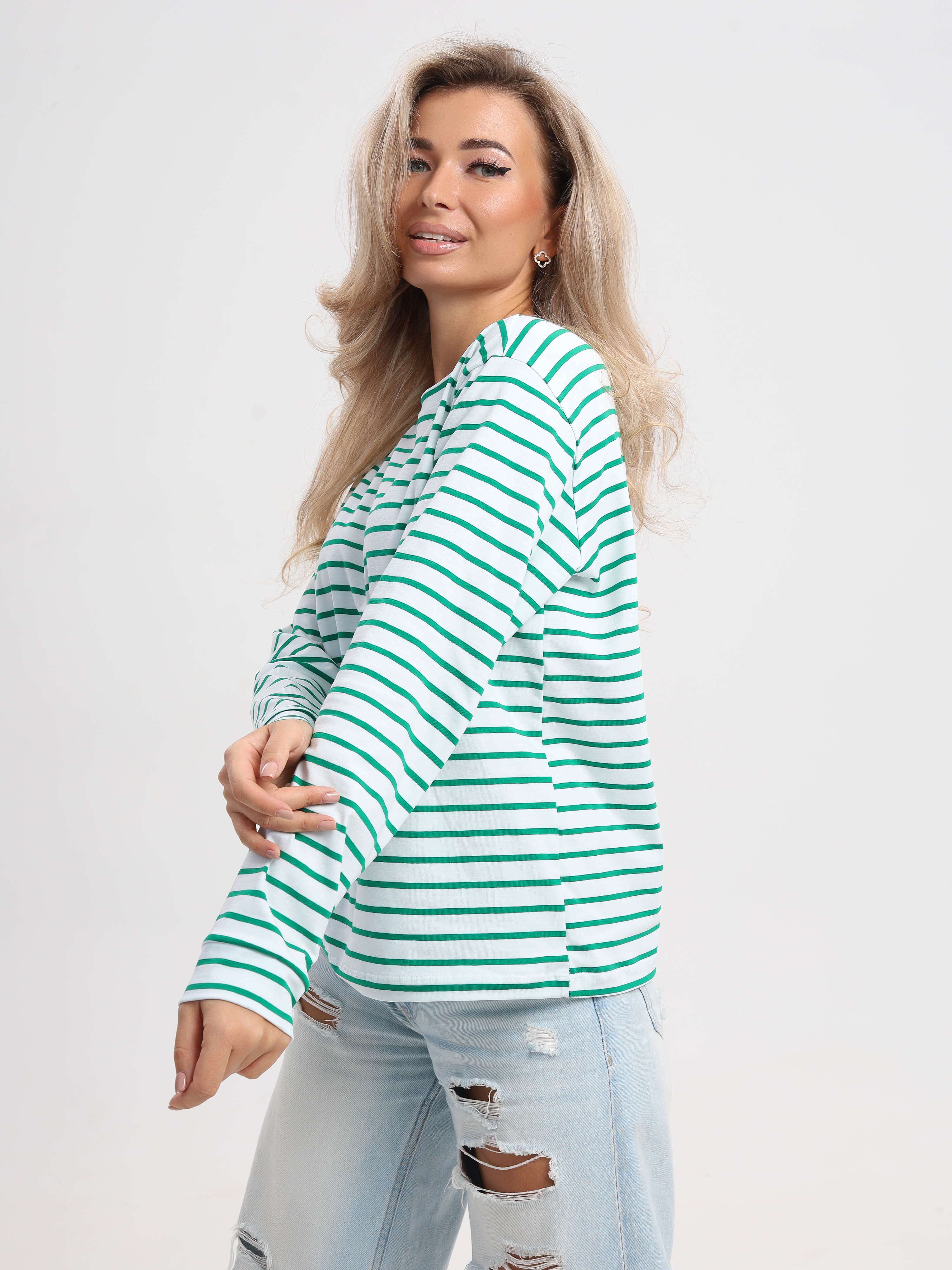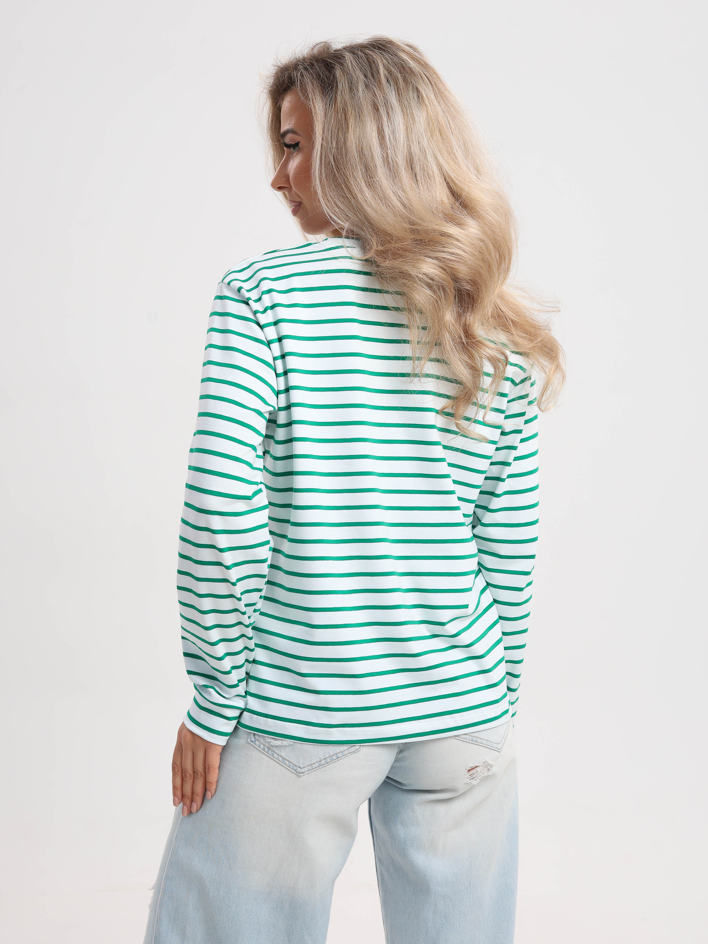 Лонгслив женский из мягкого, приятного к телу трикотажного полотна. Модель имеет длинный втачной рукав с манжетами и округлую горловину. Стильный интересный вариант на каждый день.