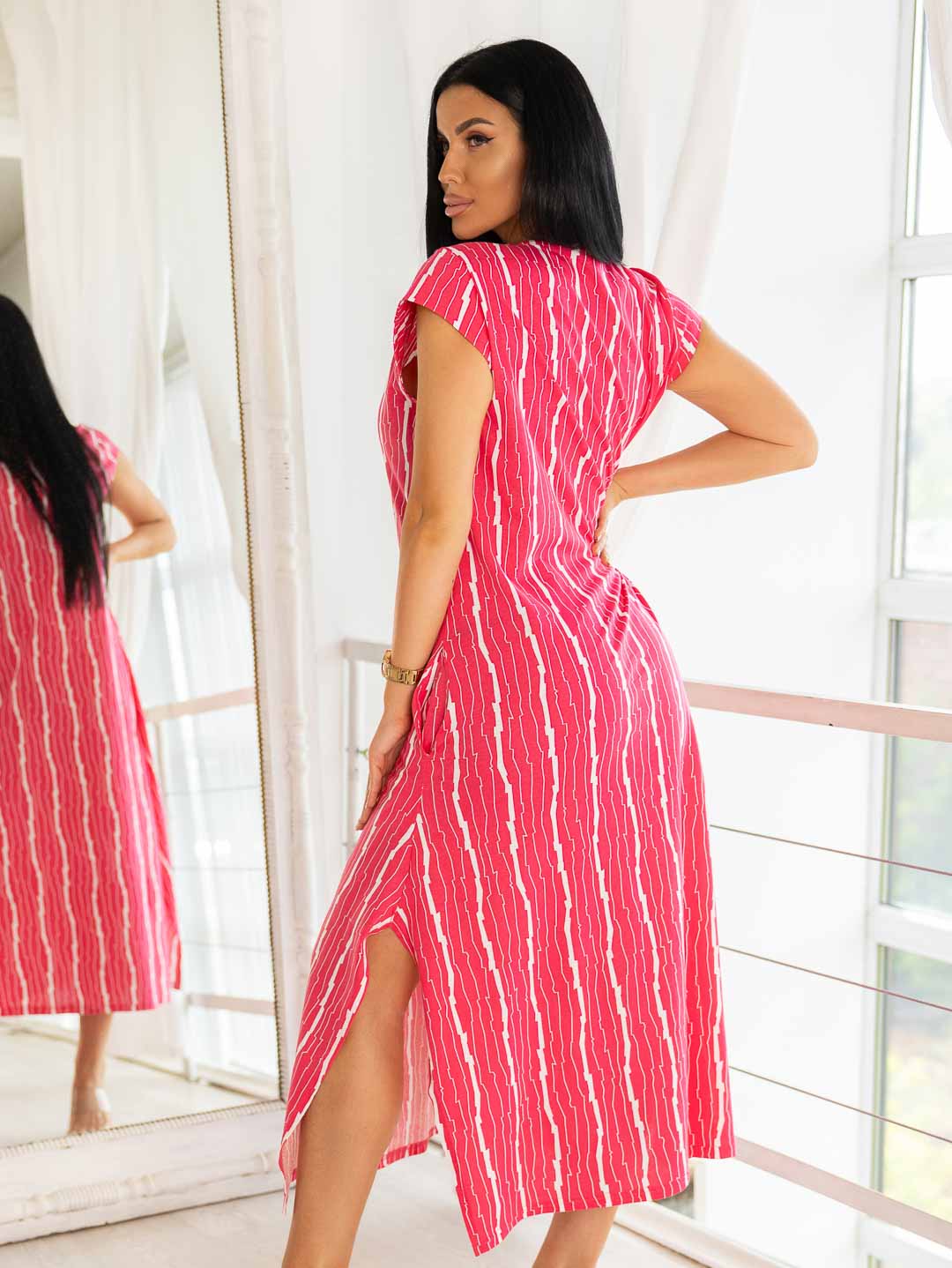 Платье в стиле бохо с карманами, с высокими разрезами по бокам, О-образной горловиной, фигурным рукавом, длины миди. Платье отлично подойдет для отпуска на море.