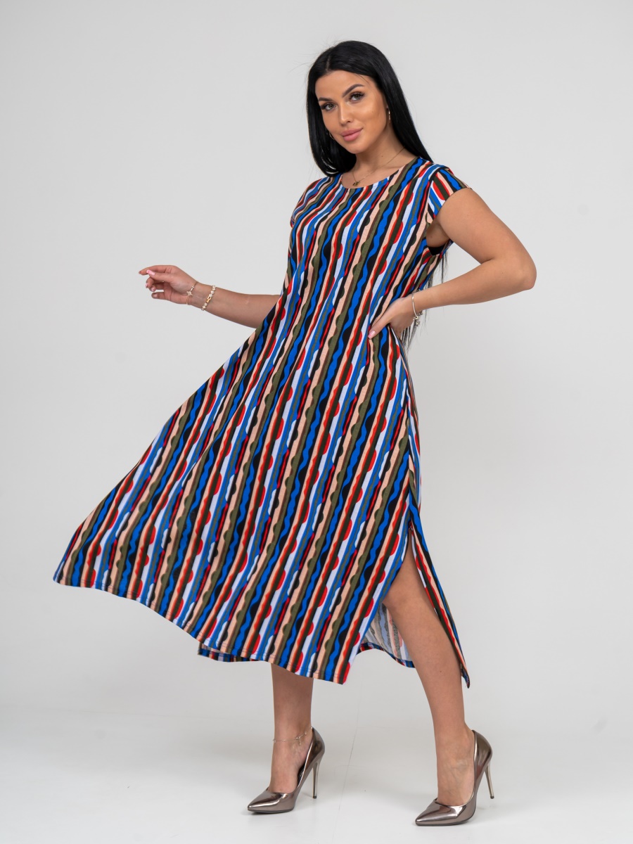Платье в стиле бохо с карманами, с высокими разрезами по бокам, О-образной горловиной, фигурным рукавом, длины миди. Платье отлично подойдет для отпуска на море.