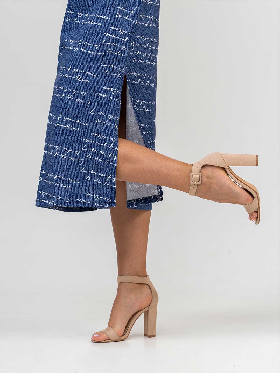Платье молодёжное из набивного трикотажного полотна 100% хлопка длиной ниже колена. Рукав базового покроя, короткий. Вырез горловины О-образный. По боковым швам присутствуют разрезы.Платье идеально подойдёт для жаркого летнего дня.