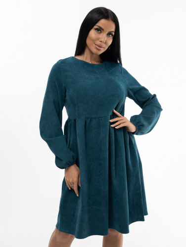Повседневное платье из микровельвета, идеально подойдет на каждый день, материал приятный на ощупь и хорошо держит форму. Завышенная талия, О-образная горловина, длинный рукав с резинкой по низу.