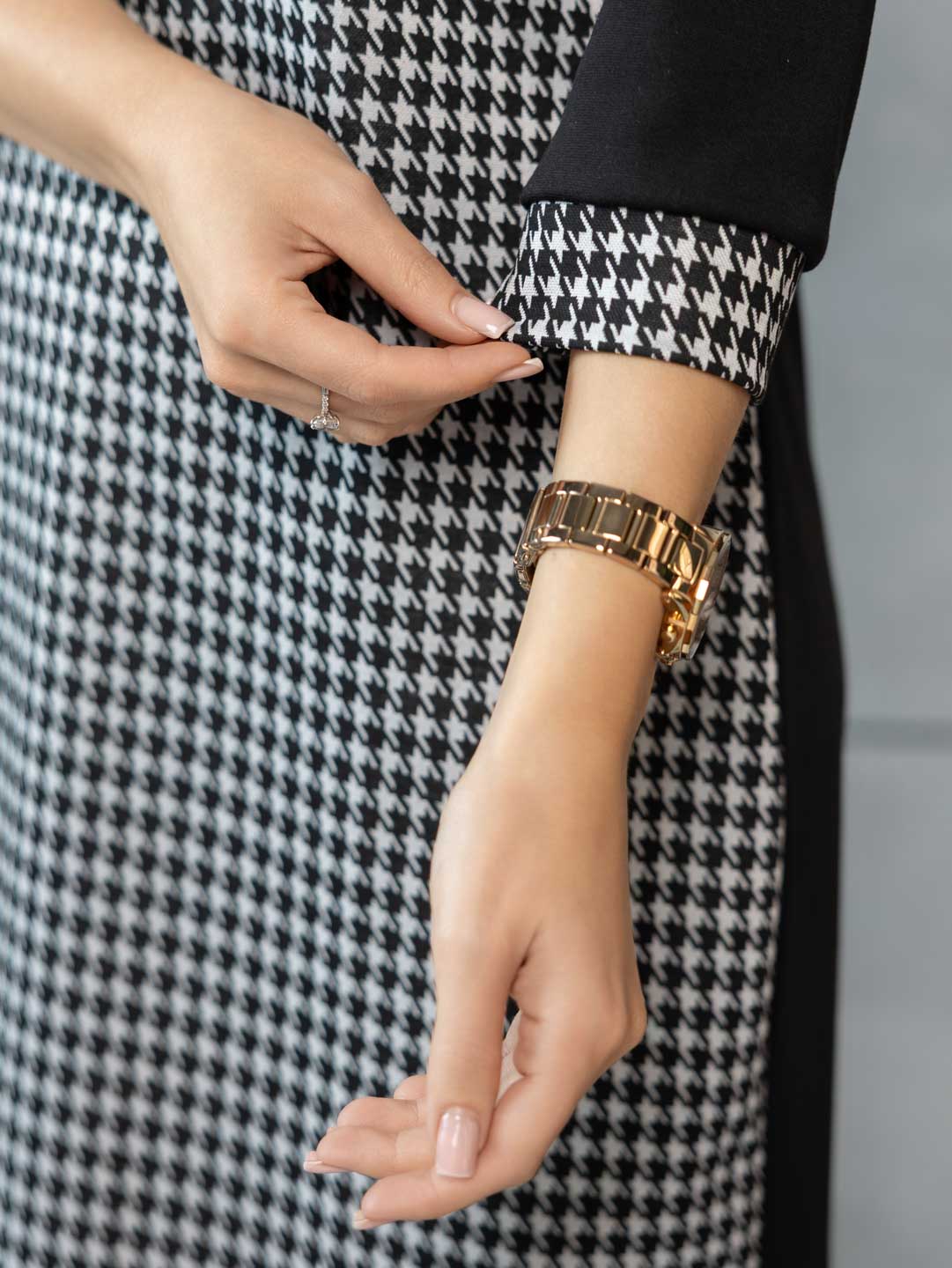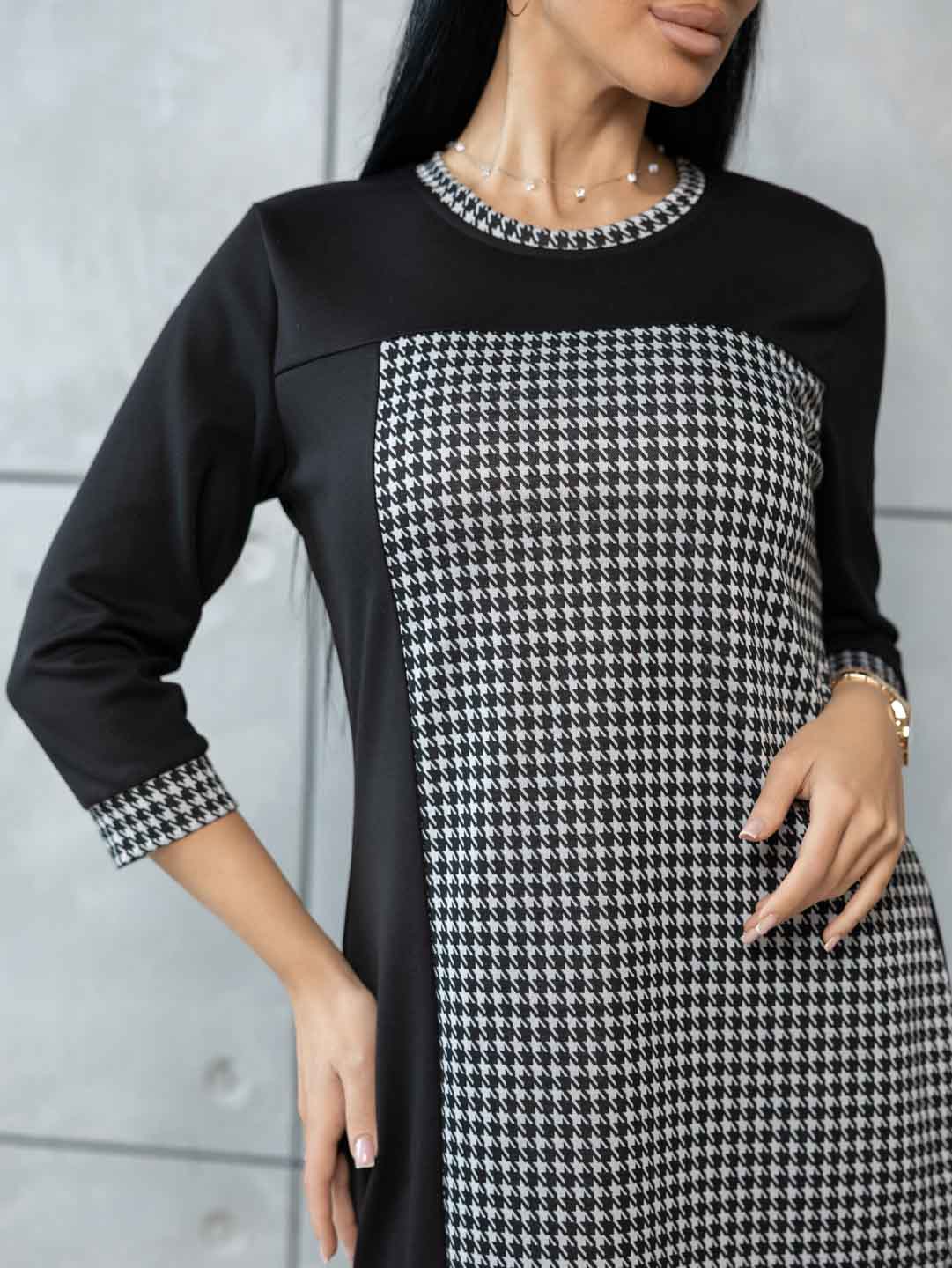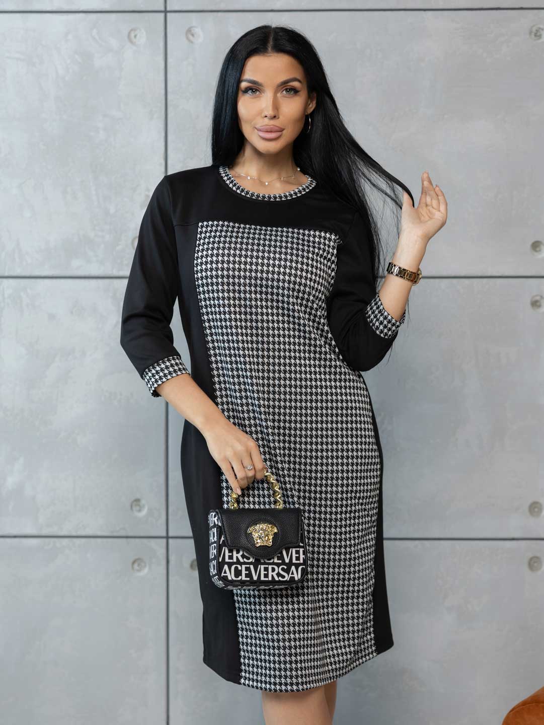 Платье прилегающего силуэта из трикотажного полотна, длиной выше уровня колена. Рукав втачной базового покроя, длиной три четверти. О - образного выреза горловины.