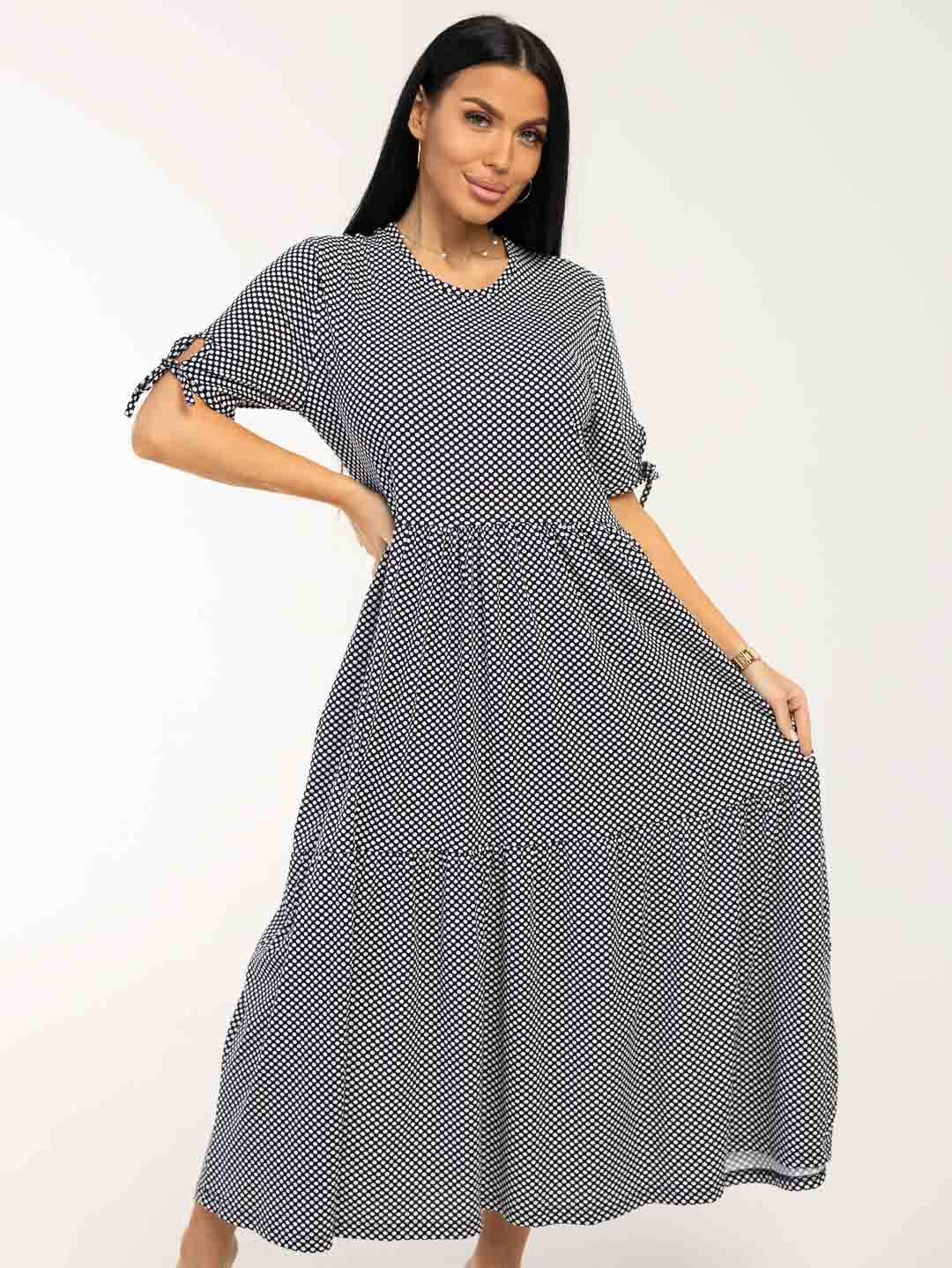 Хотите выглядеть стильно и комфортно этим летом? Предлагаем вам наше летнее женское хлопковое платье из кулирки! Кулирка – натуральное хлопковое полотно высокого качества. Идеальное сочетание легкости, комфорта и элегантности. Свободный крой платья позволит вам чувствовать себя уверенно. Короткий рукав делает платье универсальным и подходящим для повседневной носки, несколько рядов воланов добавит кокетливости в образ.