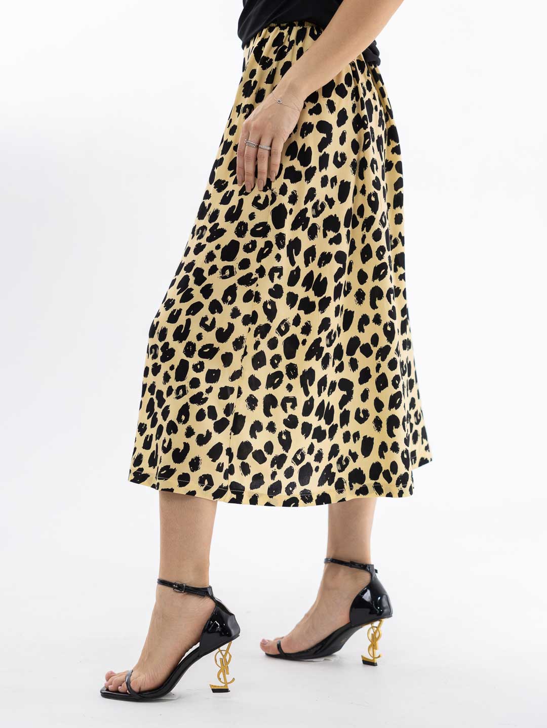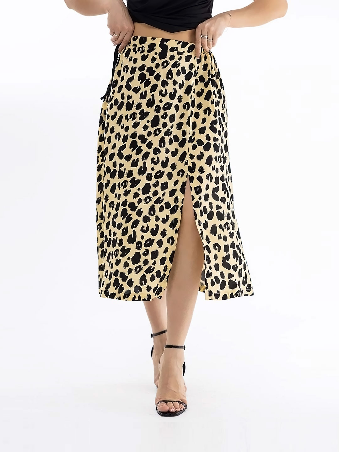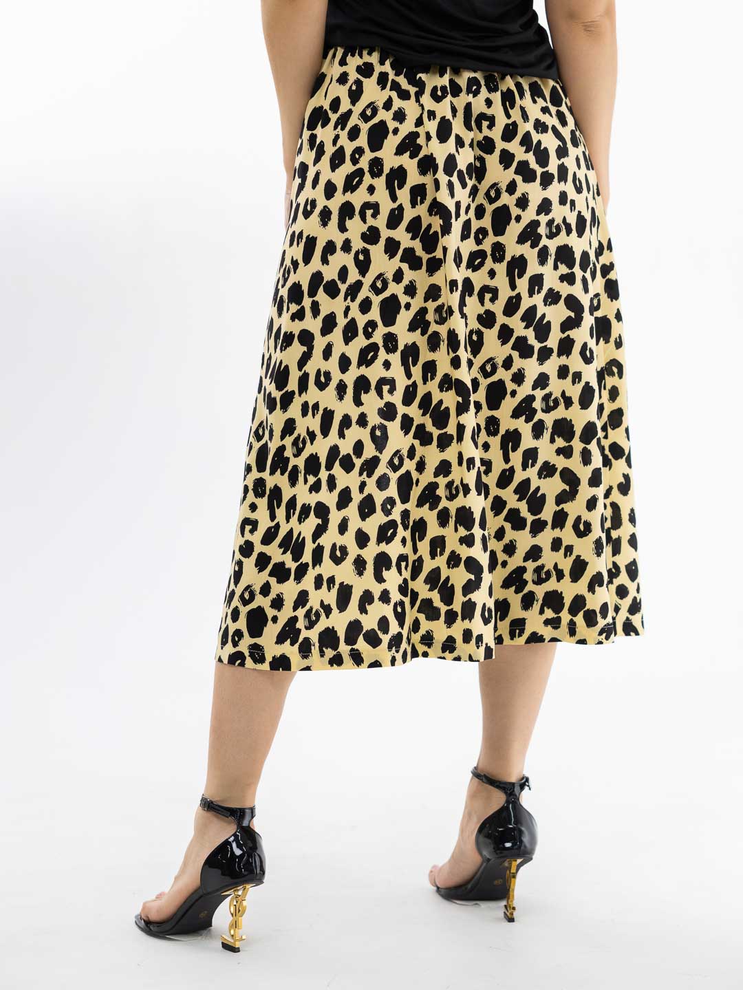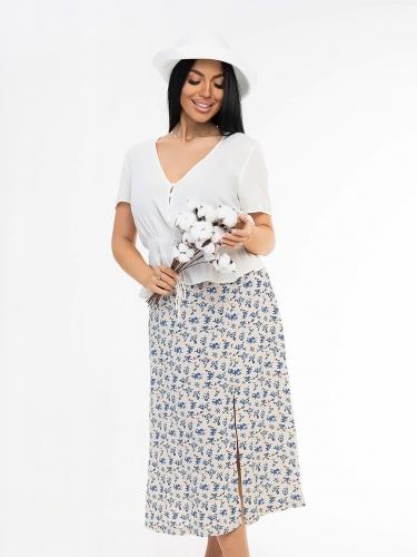 Юбка женская свободного кроя, длиной ниже уровня колена. Данная модель имеет широкий пояс на резинке, для более удобной и надежной посадки, и глубокий вырез на передней части, что придает дополнительную свободу в движении и повышенной комфорт при носке.